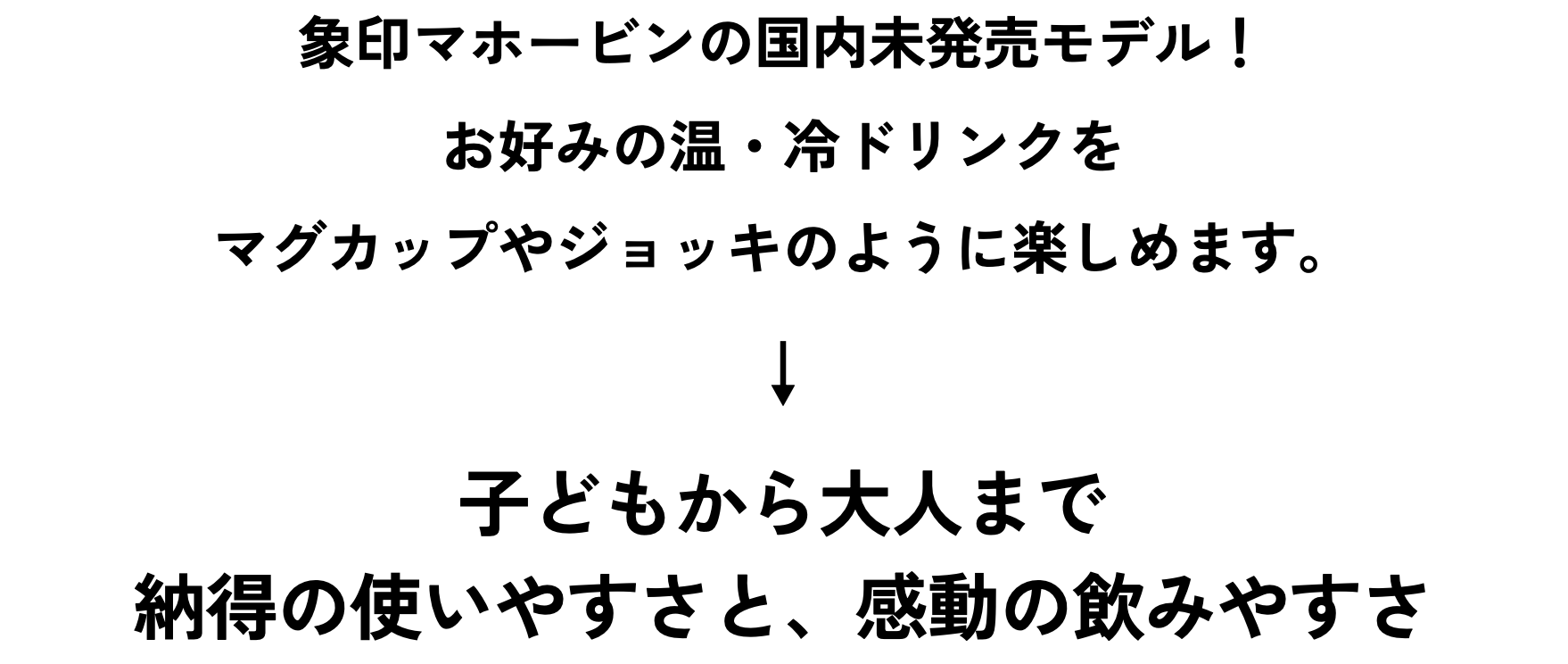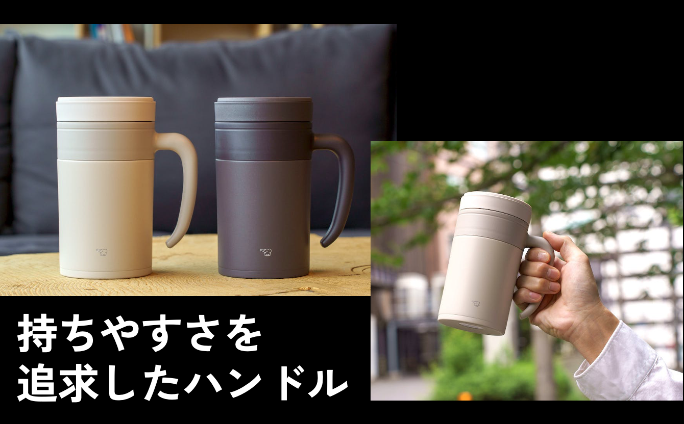 象印マホービンの国内未発売モデルが、限定仕様で登場!本体に取手が付いているタイプだからまるでマグやジョッキのようにお好みの温冷ドリンクを場所問わず楽しめます。持ち運びに便利な専用ストラップ付き。子どもから大人まで、納得の使いやすさとバツグンの飲みやすさです。