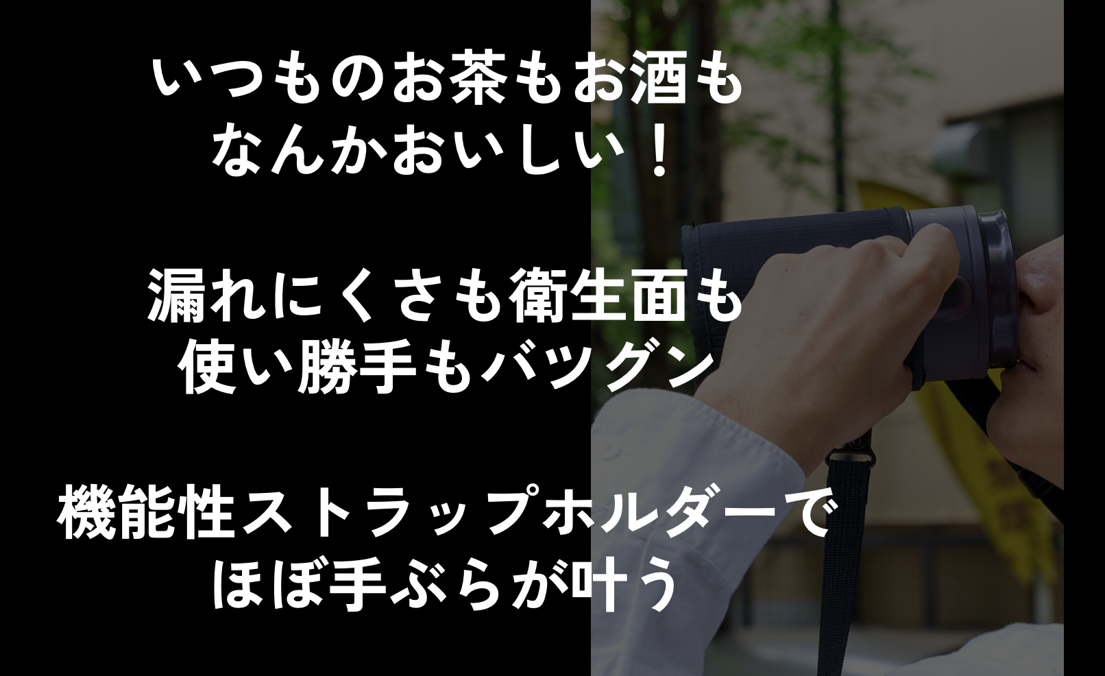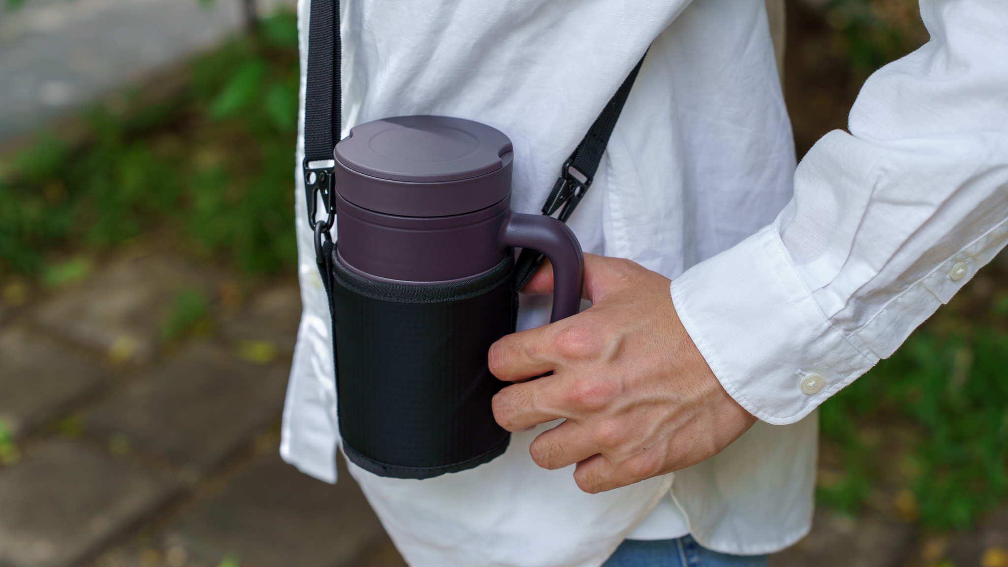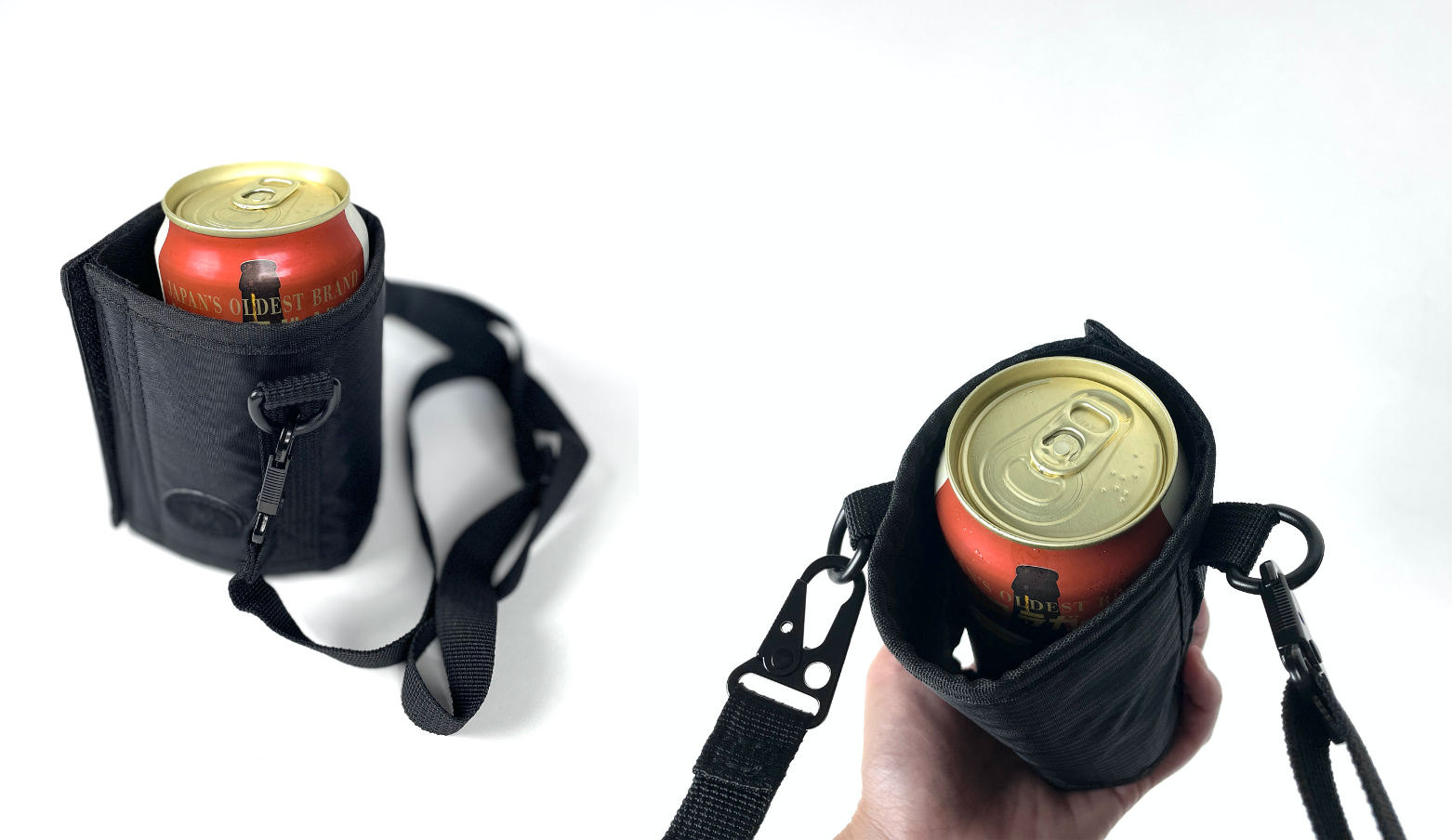 専用ストラップは缶ビールやペットボトルを入れることもできるので、HANDLE TUMBLERを使用せず、この専用ストラップだけを持って外出するのもありですよ。