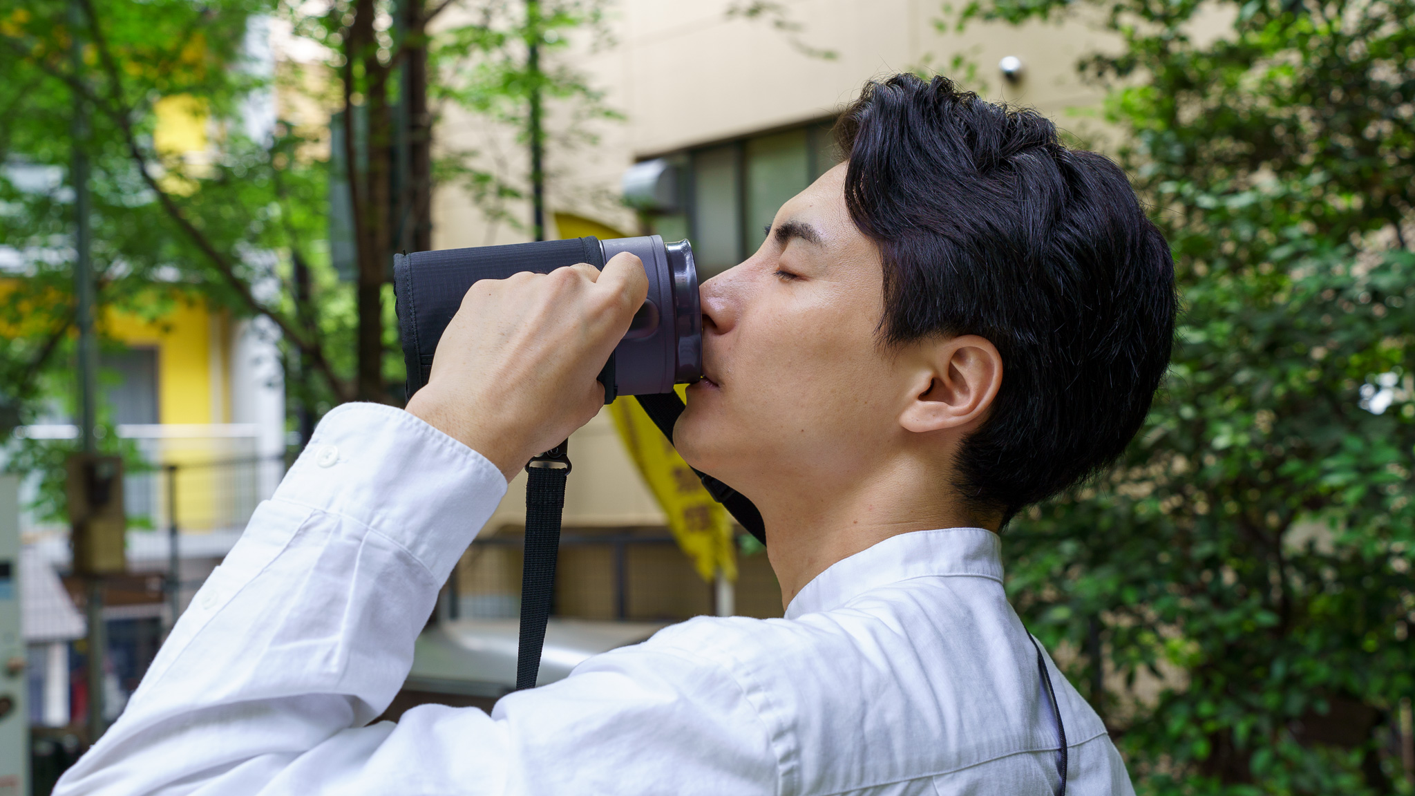 HANDLE TUMBLERには専用ストラップが付属します。表面には切り裂きに強く耐久性が高いリップストップ素材を採用。本体を衝撃から守る高い耐久性と、雨に負けない撥水性、軽さを兼ね備えた屋外でも頼れる仕様です。
