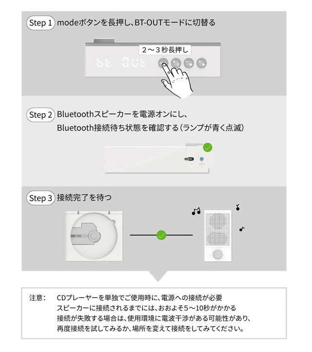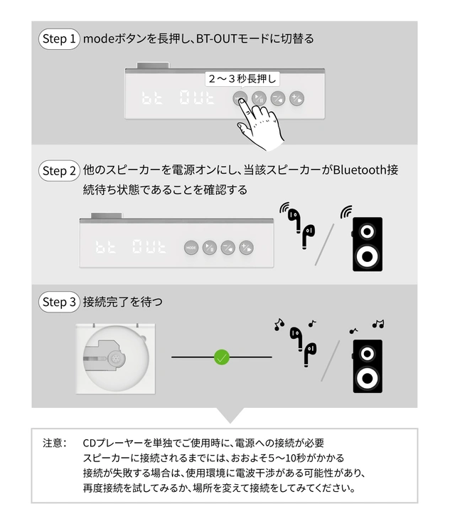 Q4:CDプレーヤーとスピーカーが分離された状態で、CDプレーヤーとBluetoothスピーカーへの接続方法は?