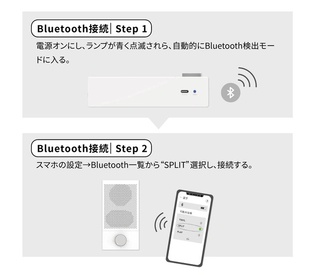 SPLITは送受信の双方向が可能なBluetooth5.3が搭載されており、Bluetooth送信機能でほかのBluetooth対応デバイスに接続可能。