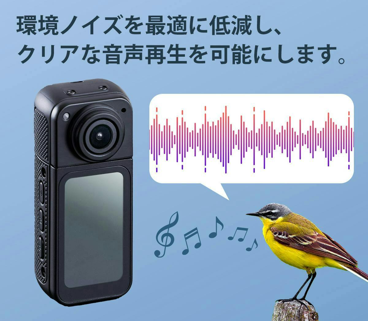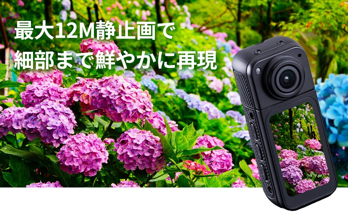 旅の絶景も仲間との瞬間も臨場感そのままに残せます。タイムラプスは1〜60秒間隔、ループ録画は1〜5分設定可能。映像とともにクリアな音声も記録し、臨場感を再現。