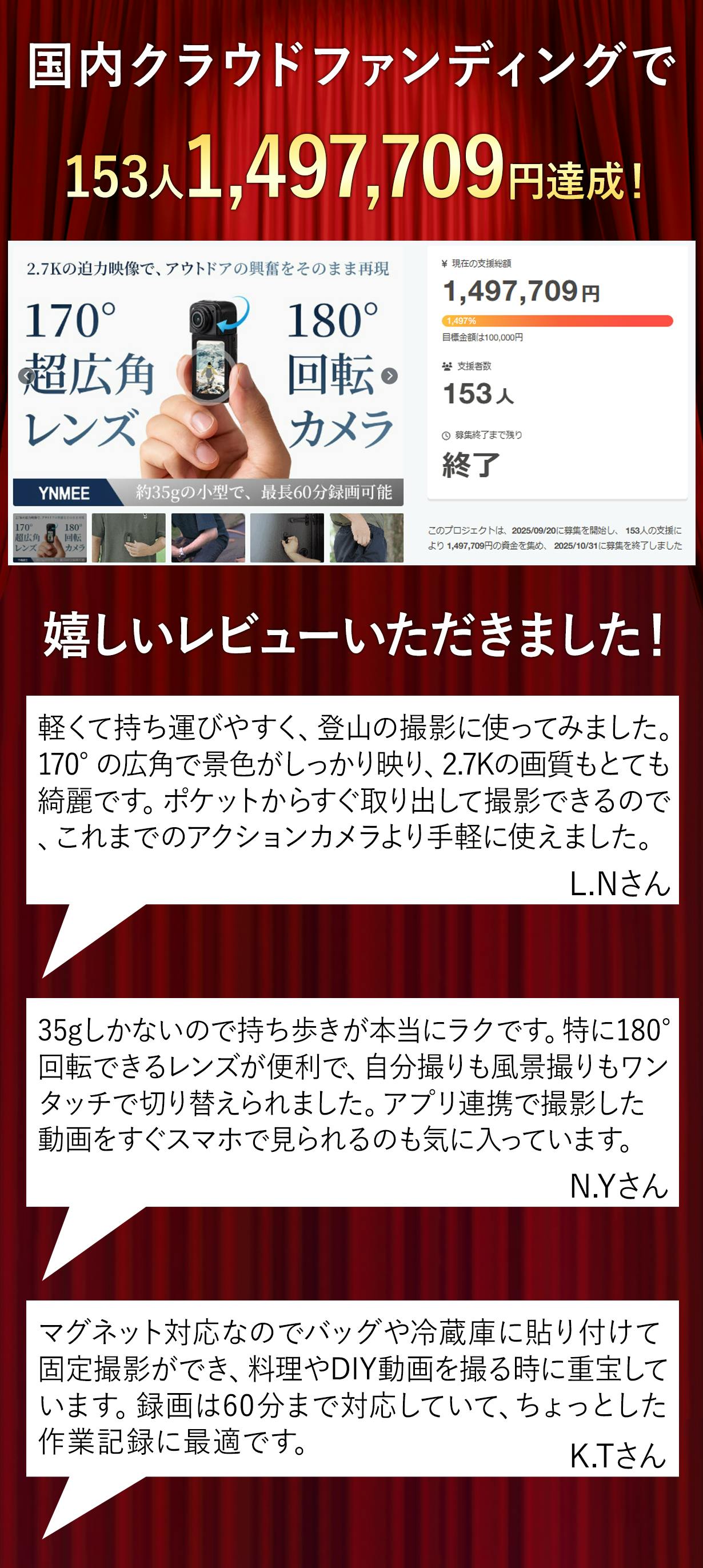 ※想定を上回る皆様から購入を頂き、量産体制を更に充実させることができた場合、一般販売価格が予定価格を下回る可能性がございます。
