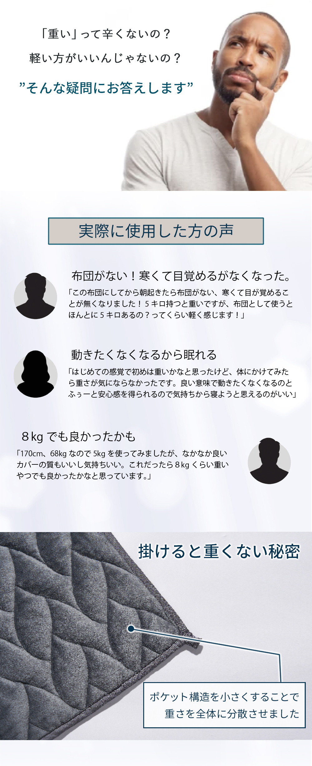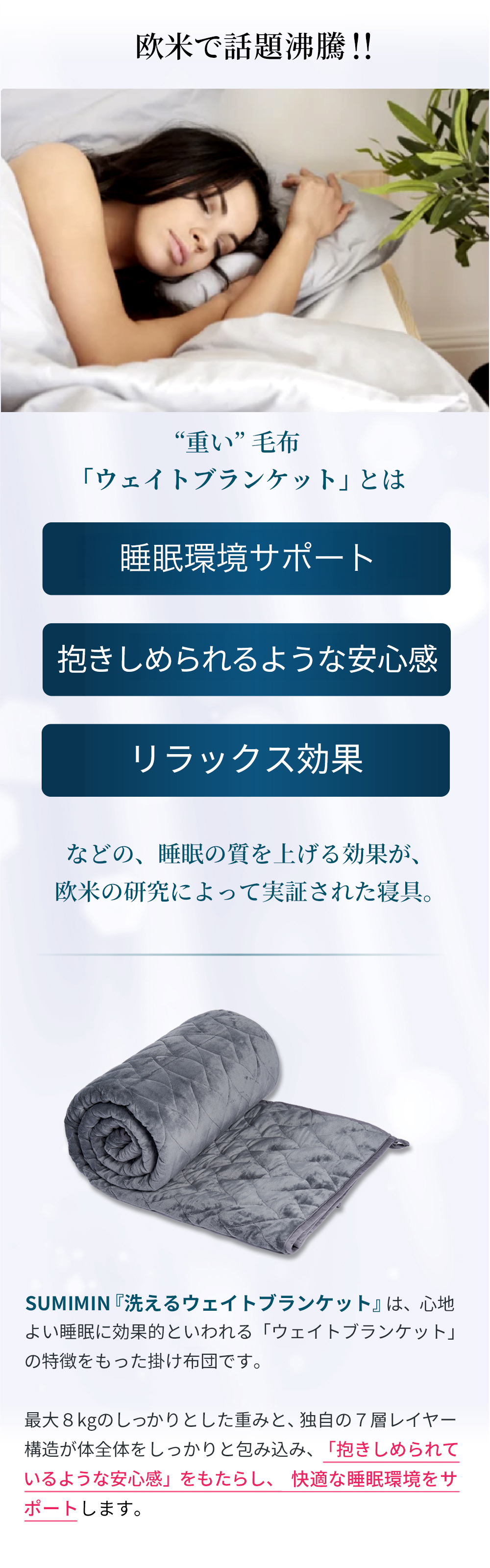 無重力から重力へ!3D無重力枕「炭眠シリーズ」動きたくなくなる掛け布団。重い布団で極上の安心感睡眠を体感!話題の重力ブランケット型掛け布団登場!選べる重さ3種類!
