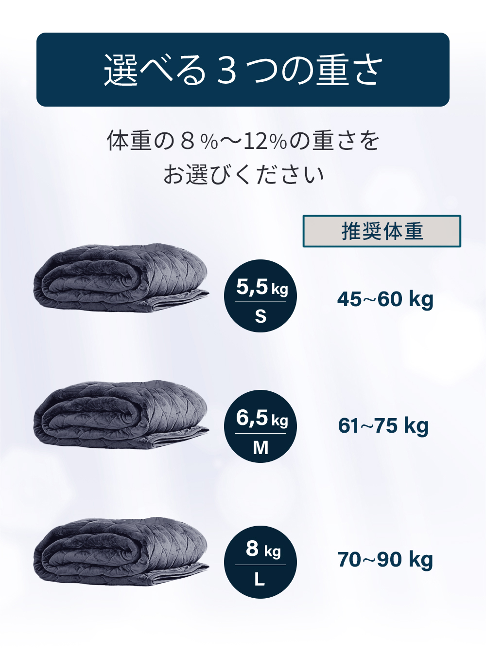 選べる3つの重さで、自分に合ったリラックス感を実現。