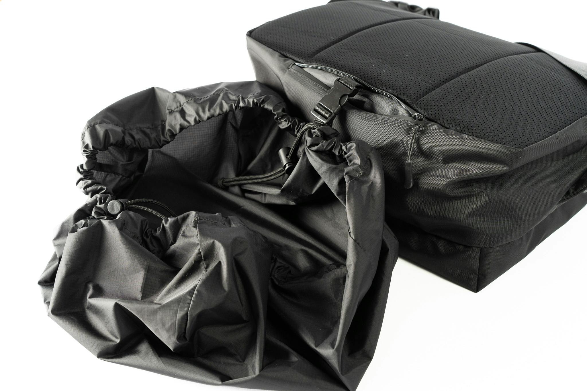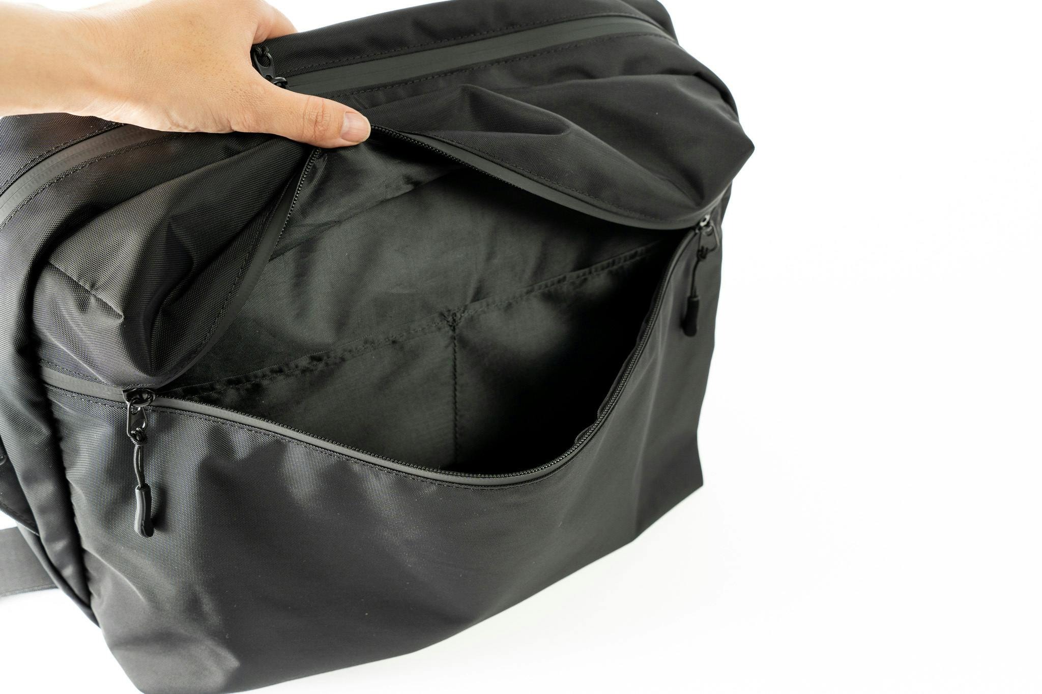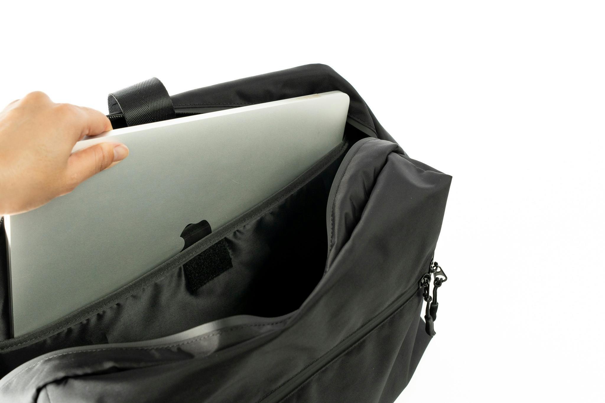 内部には、PCコンパートメントを装備しているので、カフェやコワーキングスペースでのリモートワークにも便利。15インチのノートPCまで入ります。