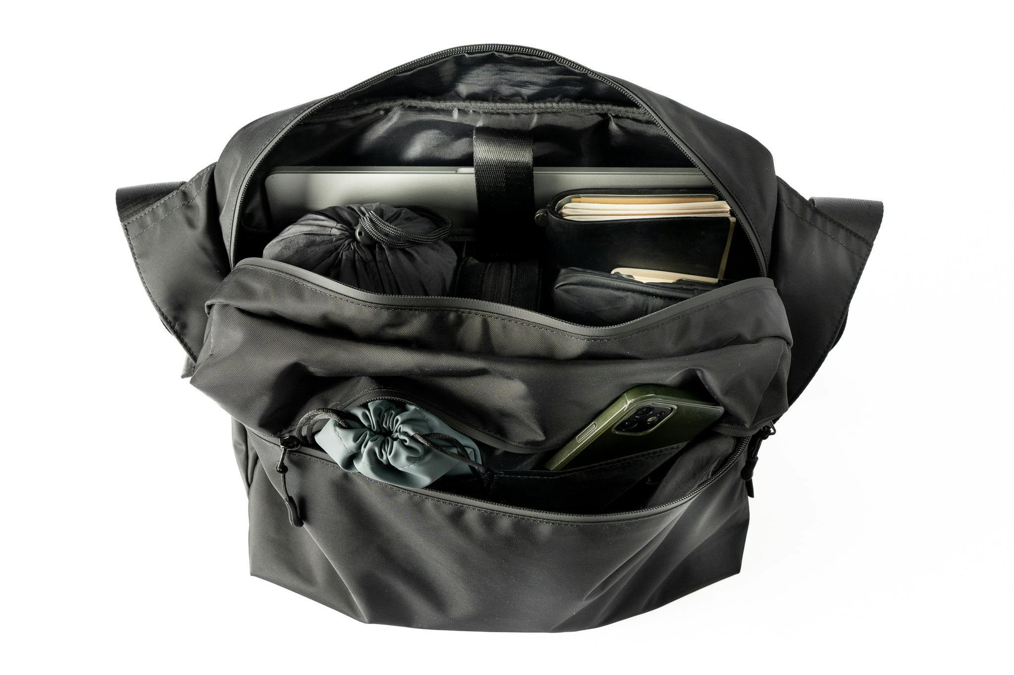 一度に収納できるアイテムは、ノートPCに手帳、ポーチ、水筒、眼鏡ケースほか盛りだくさん。 “ちょうどいい”を体現したサイズ感でも、都市生活に必要なアイテムがすっきりと収まります。