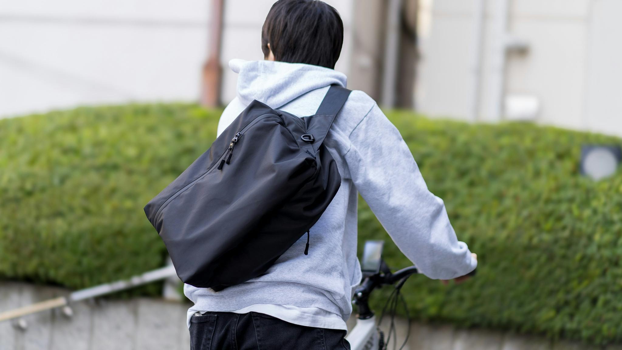 バッグを体の前に移動すれば、背負ったままでも荷物へのアクセスがスムーズです。