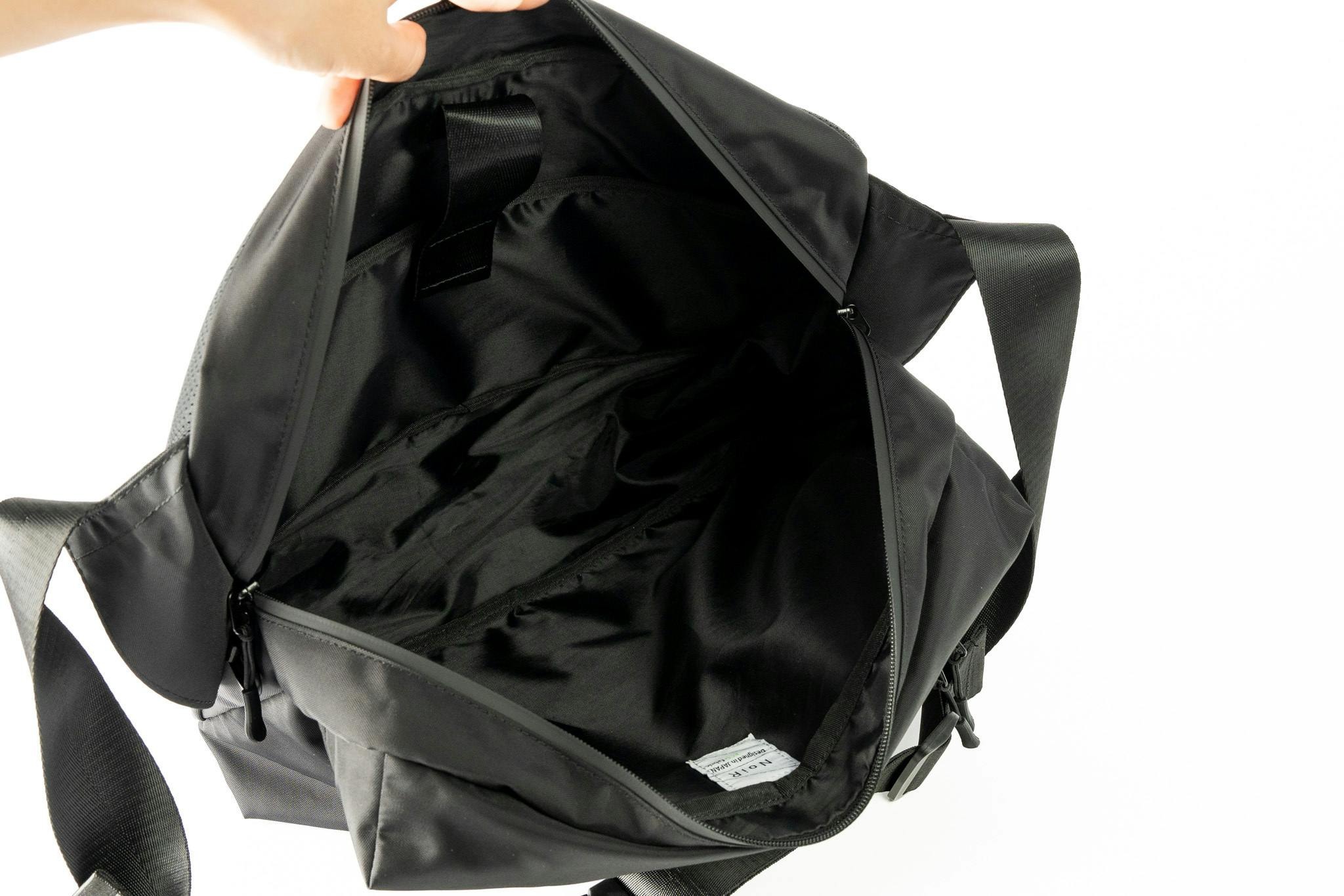 ガバッと大きく開くメイン収納部は、荷物を整理整頓しながら出し入れしやすく、荷物の場所が一目瞭然。ジム通いに必要な着替えやシューズなど、大きなアイテムだってスムーズに収納できます。