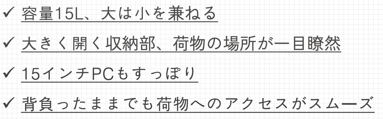 余計なものを削ぎ落とした結果、僕たちが日常使いに最適だと判断した容量は15Lです。