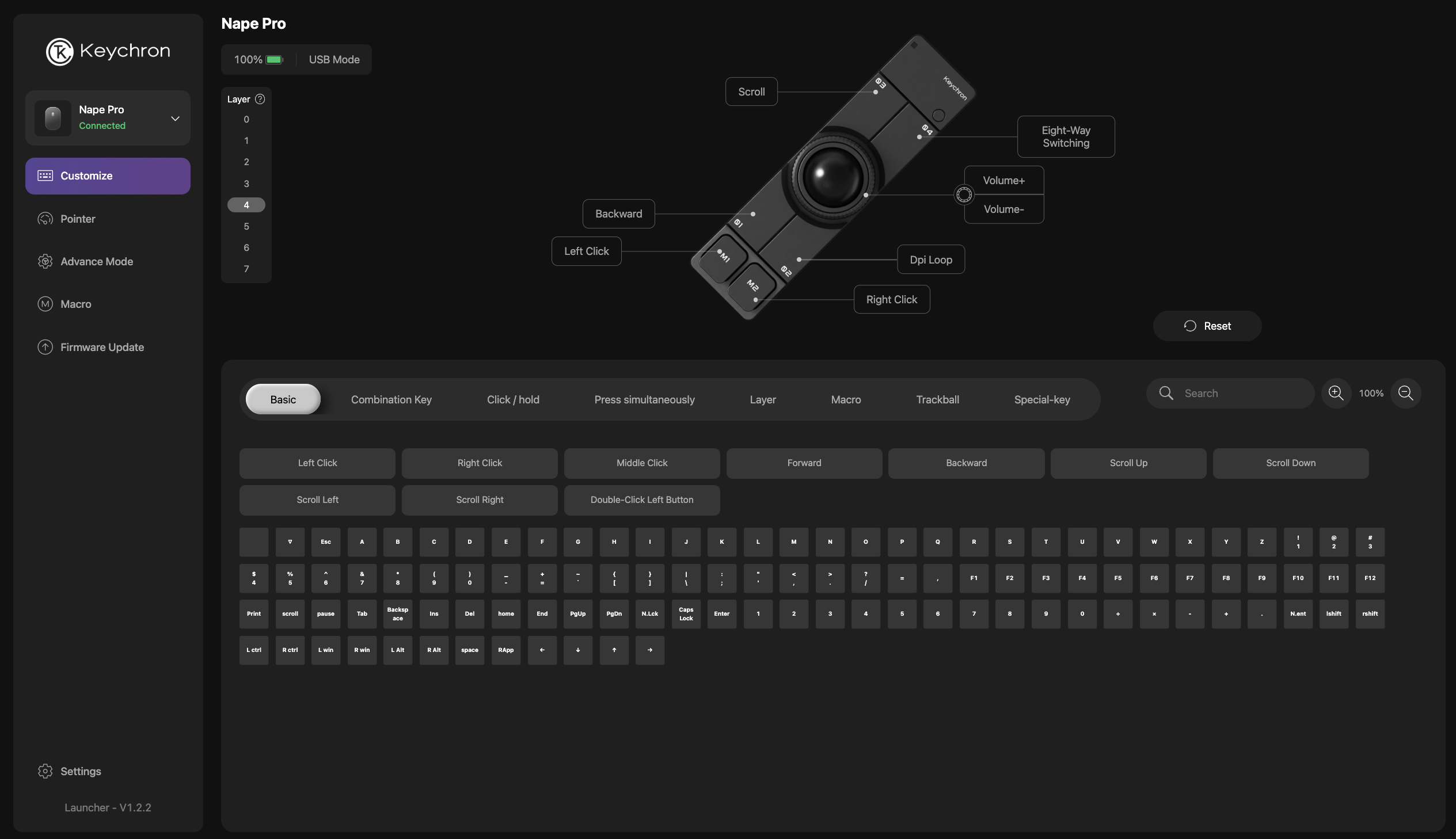 これらの設定はすべてWebアプリ「Keychron Launcher」で行ないます。設定はNape Pro本体に書き込まれるので、アプリをPCにインストールする必要はありません。