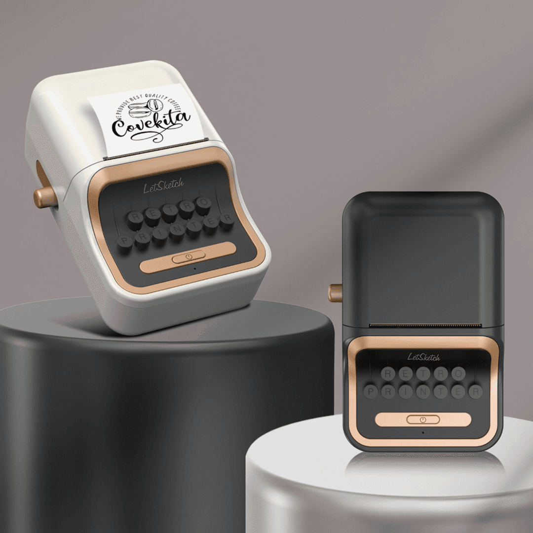 クラシカルなタイプライターをイメージした、愛着の湧くデザイン。高画質300dpi小型サーマルプリンター