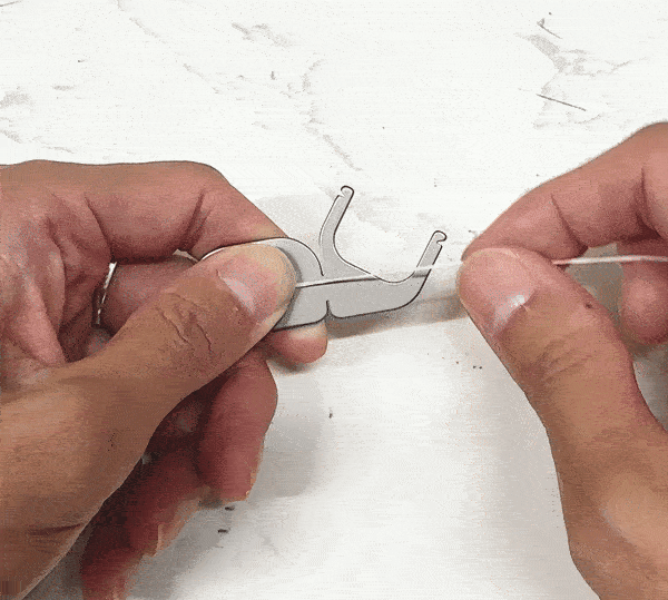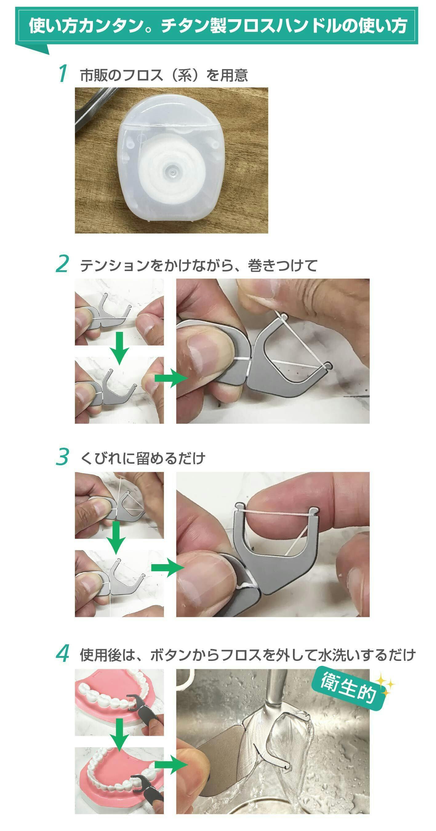 このようにお好みの市販のフロス糸をチタン製のハンドルに巻き付けて使うだけ。