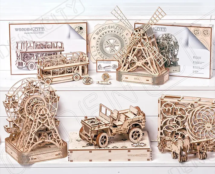 私たちが展開するブランド「WOODEN.CITY」は、機械仕掛けの自走式木製パズルや立体モデルの設計・製造を一貫して手がけています。