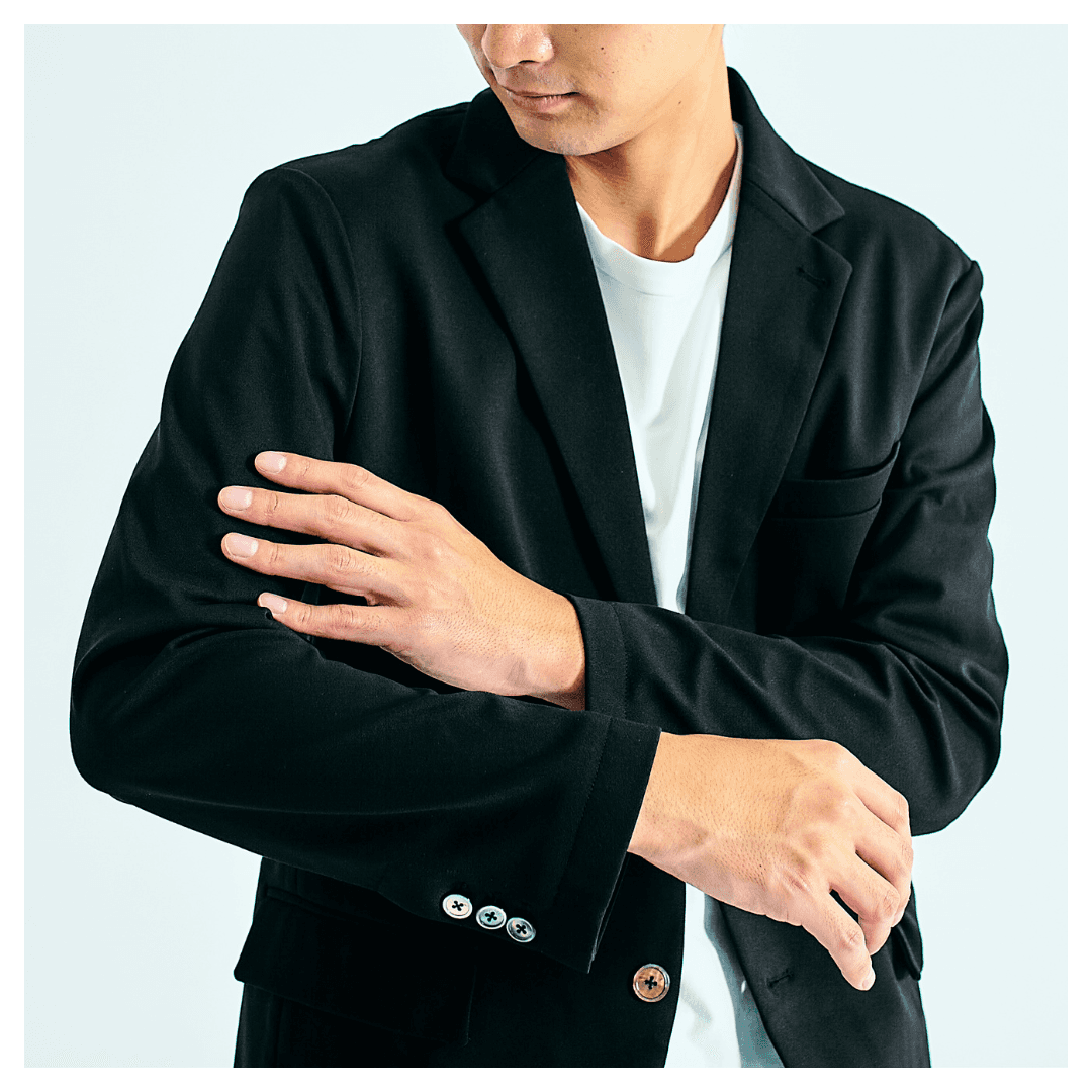 今回は少し素材感を厚めにし、超微細起毛を施したBotanicaltechⓇVelvet Touchを発表させていただきました。秋冬初春向けです。これまでの動きやすさ、着心地に「高級感」「Luxury感」を感じていただけると思います。(感じ方には個人差があります。)ジャケットの袖口は切羽仕様にしてボタンの開閉もできるようにしました。素材が少し肉厚でも袖まくりし易い、そんな思いからです。この機会を是非ご利用ください!
