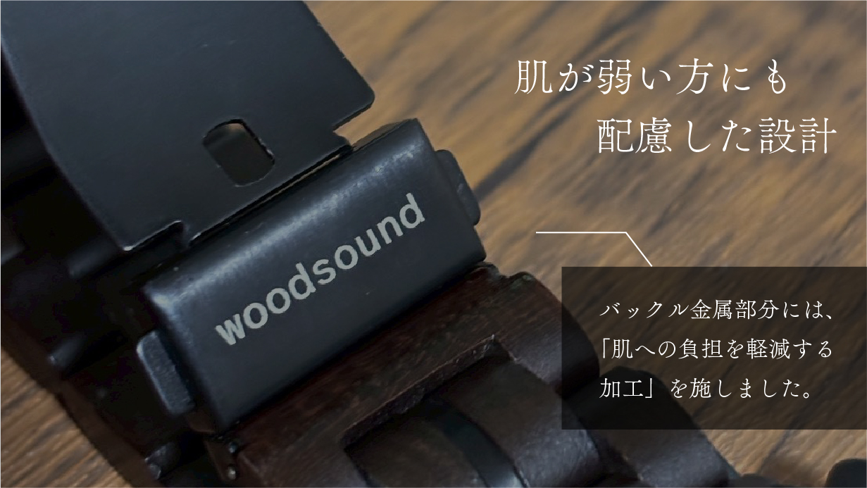 本製品は、直接肌に触れるバックルにまで「肌への負担を軽減する加工」を施し、「木だから心配いらない」で終わることのない徹底した配慮を実現しました。