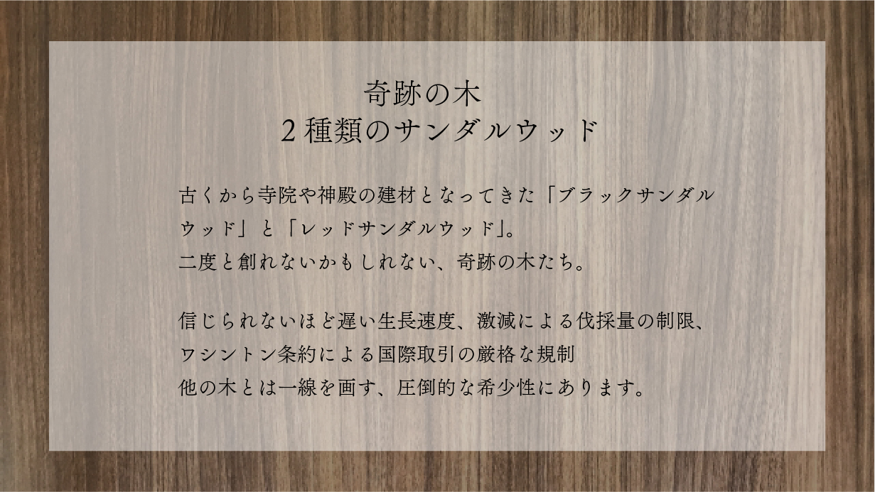 「ブラックサンダルウッド」と「レッドサンダルウッド」の2種類からお好みの方をお選びいただけます。