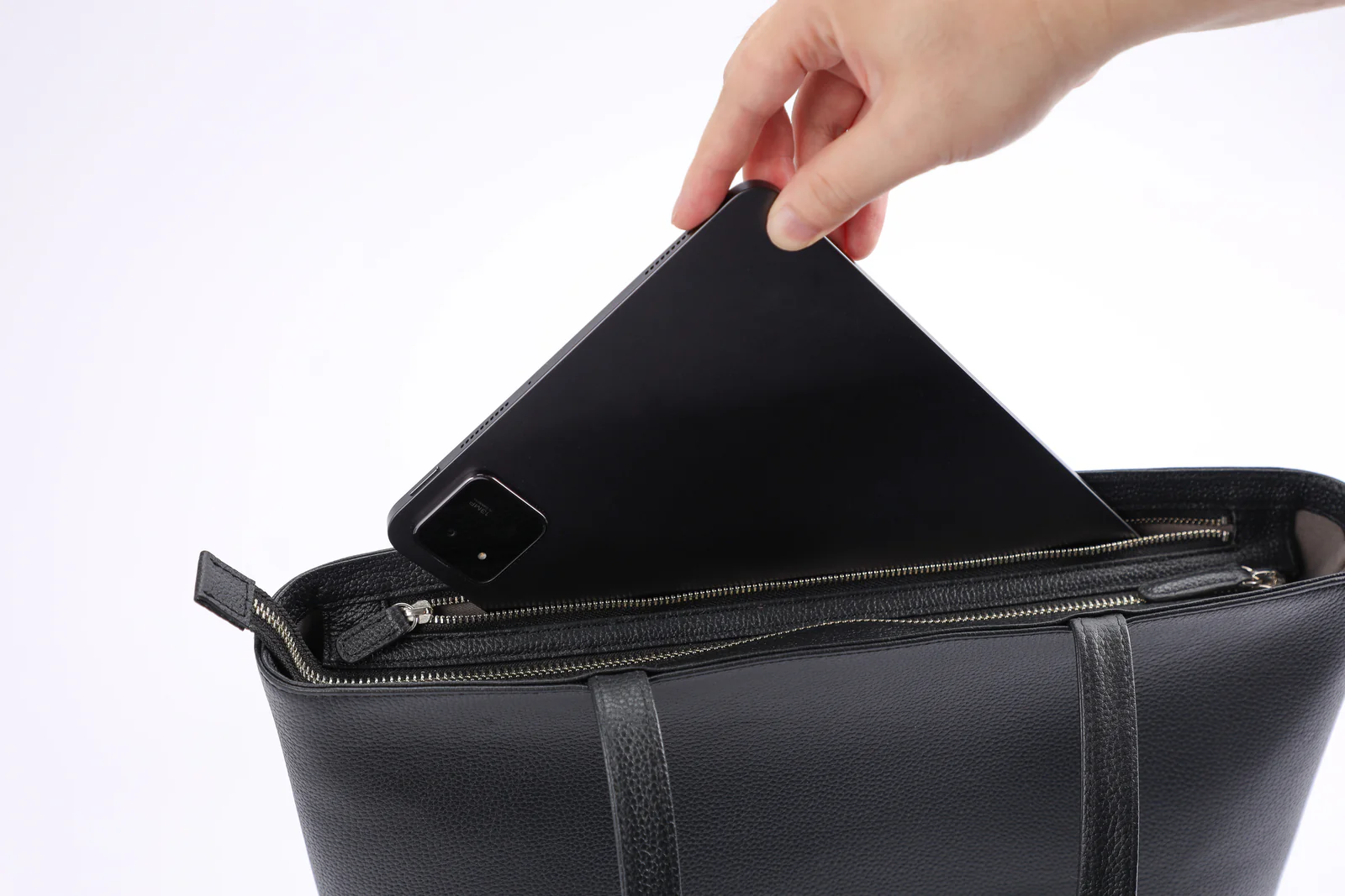 11インチのタブレットやB5ノートがぴったり収まり、中で倒れたり折れたりするのを防ぎます。