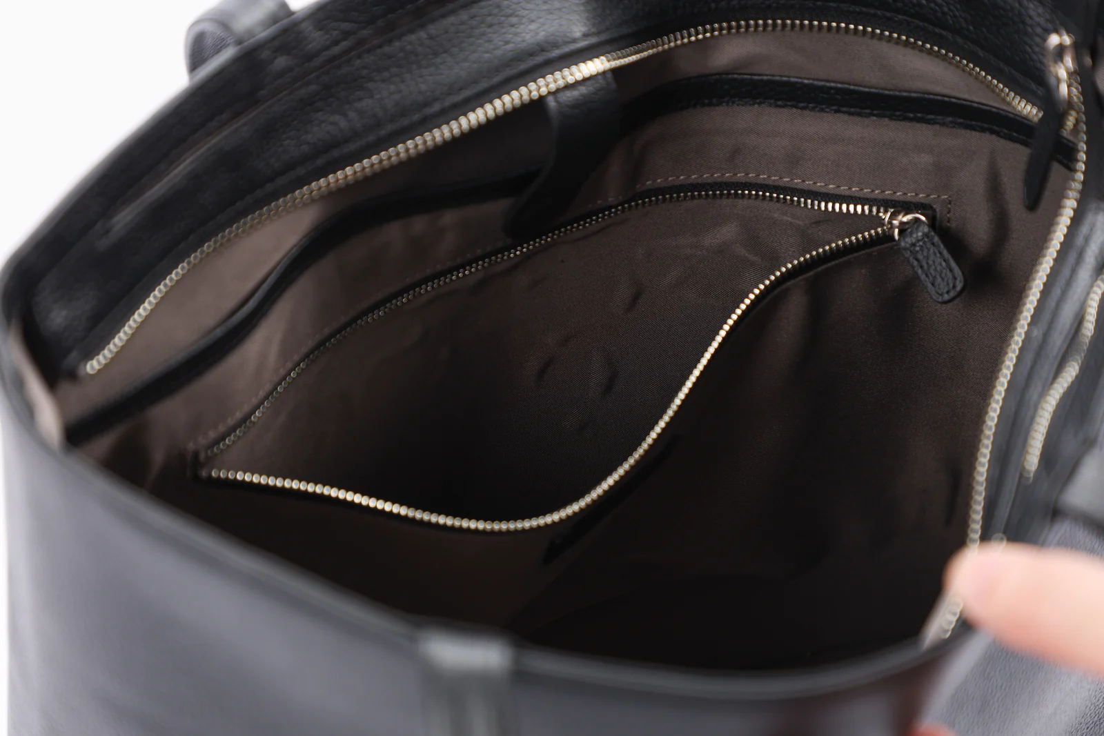 ポケットやファスナーを表に出さず、外観から装飾を一切排しました。