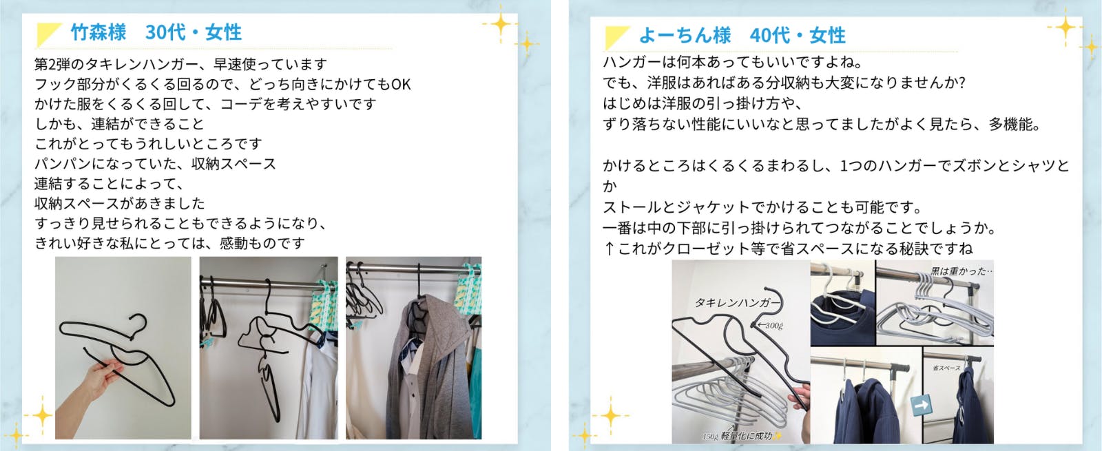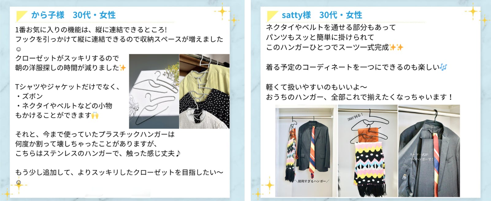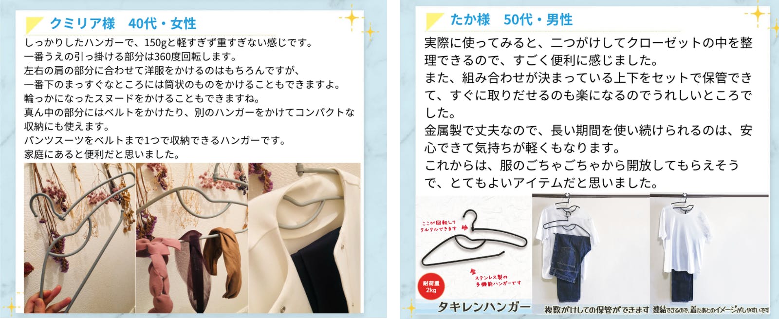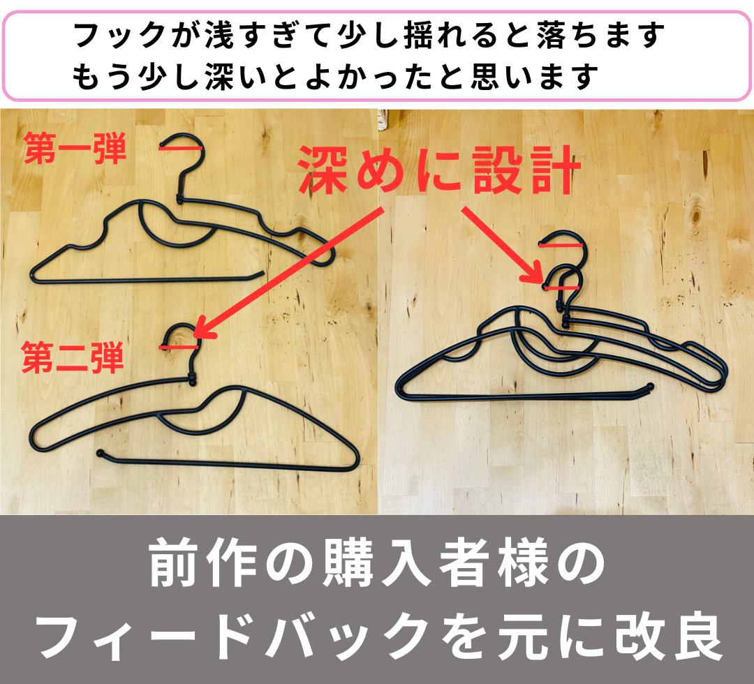こちらの商品はハンガーに対するお悩みを解消できればいいなと思い、試行錯誤を重ねて複数回のサンプル開発を取り組んだのちに誕生しました。