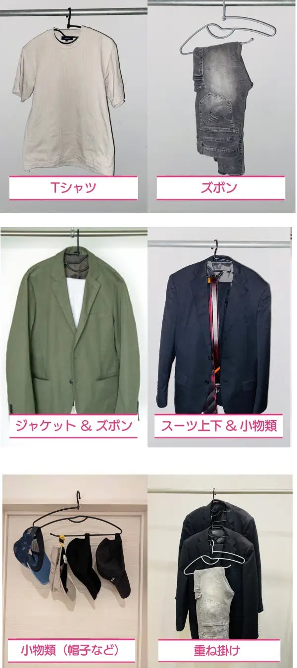 など、お気に入りの服を自由に組み合わせて掛けれます。