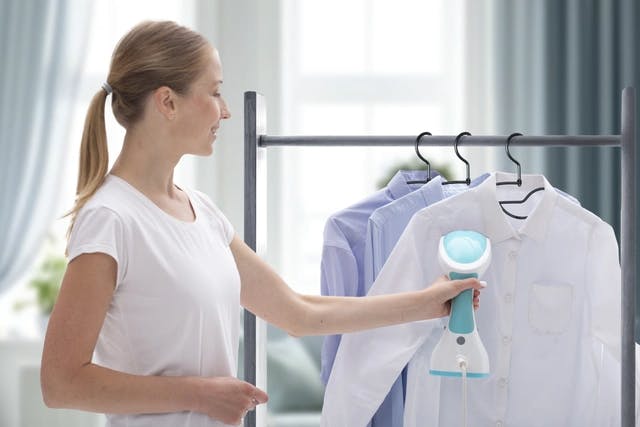フックが360度回ることで、ハンガーに服をかけたまま向きを自由に変えてアイロンがけもできます。