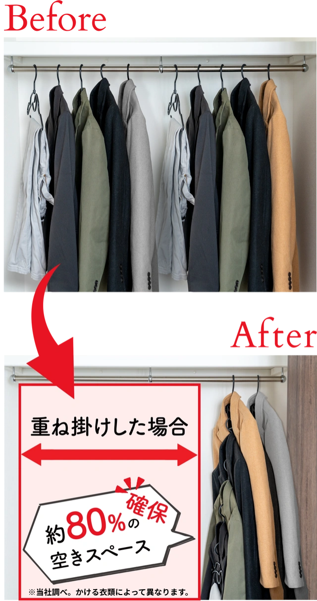 向きを気にせず掛けられるので、統一された美しいクローゼットが完成します。