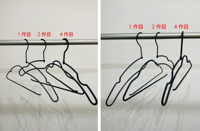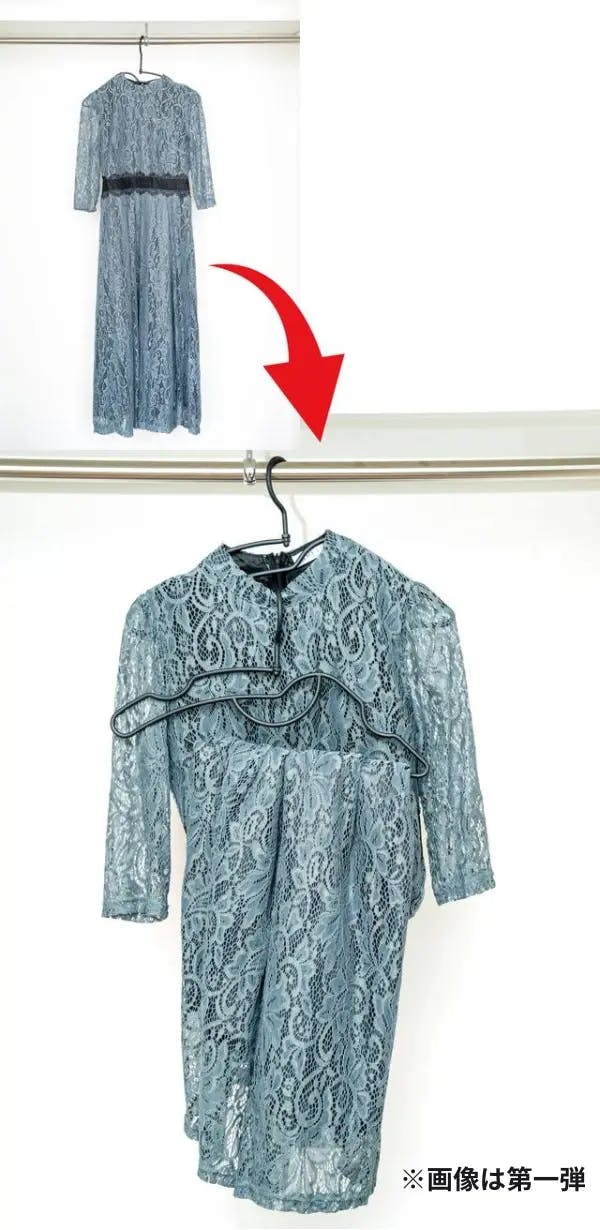 ワンピースなどの着丈の長い衣類はハンガーを2本使って収納することが可能です。