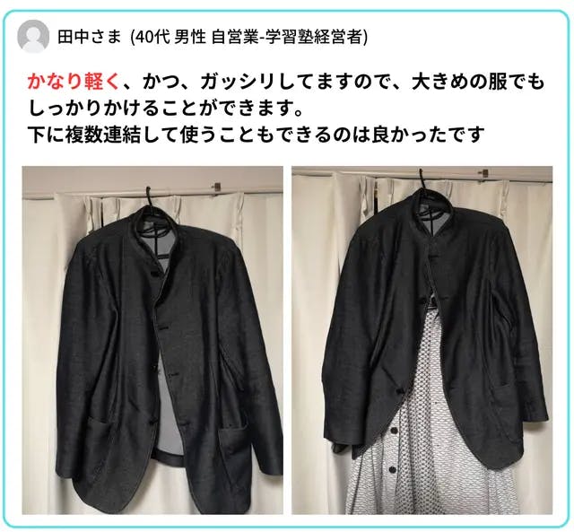 これらのハンガーは強度が低いと衣類の重みで変形することがあります。