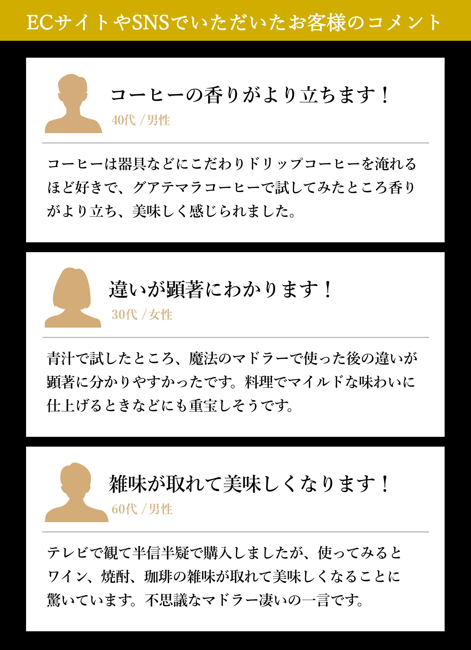 独自の金属触媒加工により、たった10秒で口当たりをまろやかにする魔法。