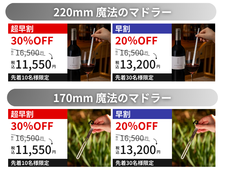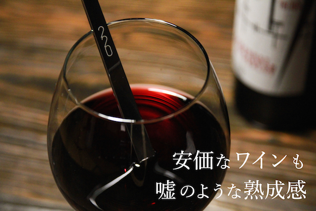 そんな時に魔法のマドラーを使えば、短時間で角のない飲みやすいワインへと変えてくれます。