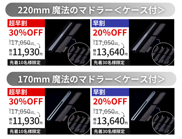 「220mm」専用ケースと「170mm」専用ケースの2種類をご用意しています。