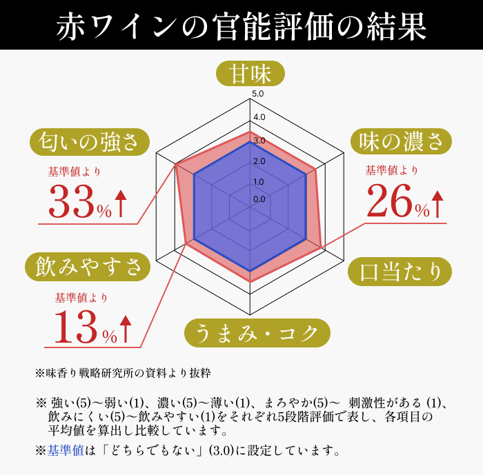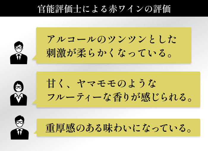赤ワインでは「少しまろやかになり、角が取れた印象」「甘くてフルーティーになり、飲みやすくなった」といった評価を受けております。