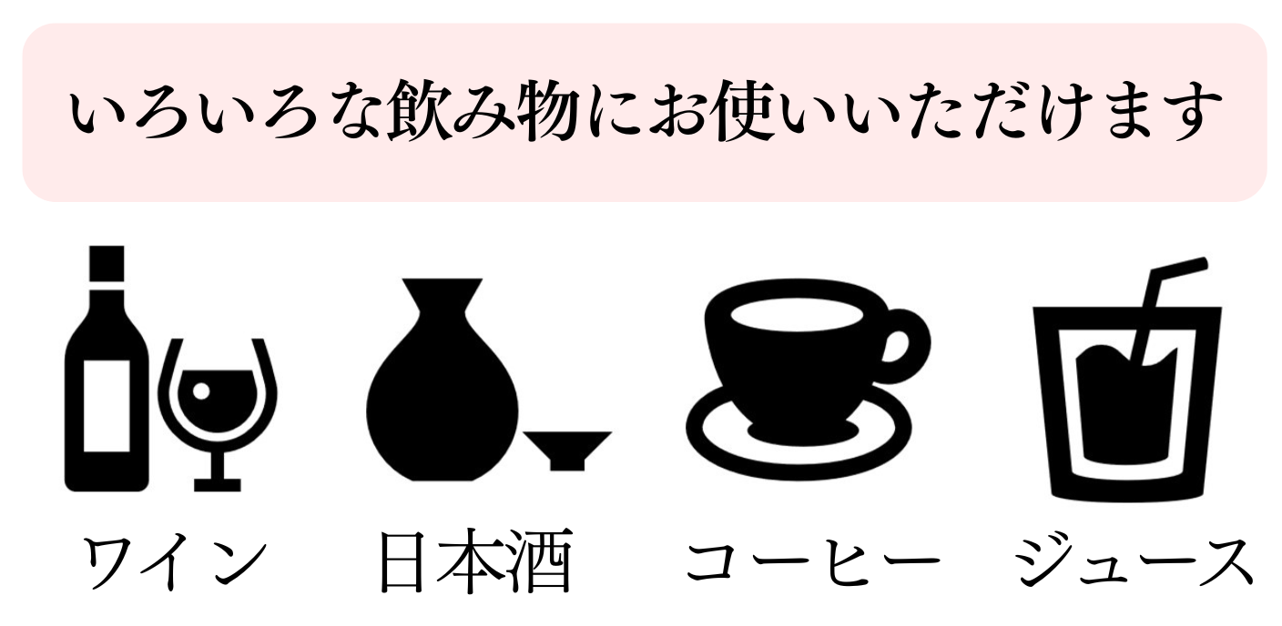 ワインだけでなく焼酎やウイスキーなどのお酒類、コーヒーやジュース、さらにはお水にもお使いいただけます。