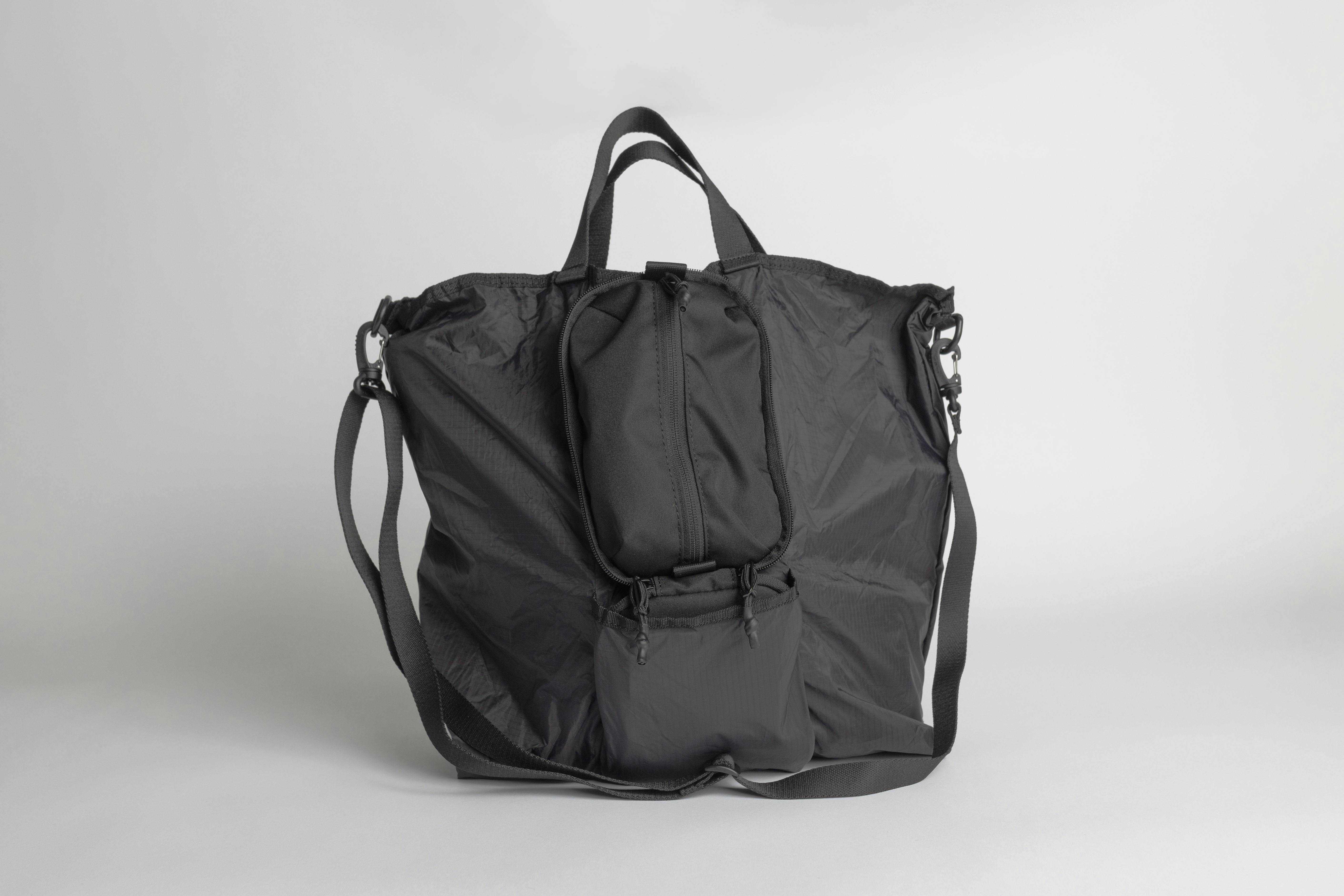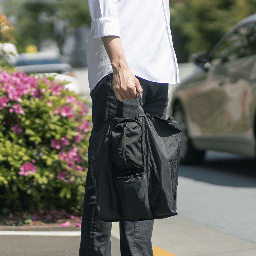 トート兼ショルダーバッグはパッカブル仕様で簡単に変形