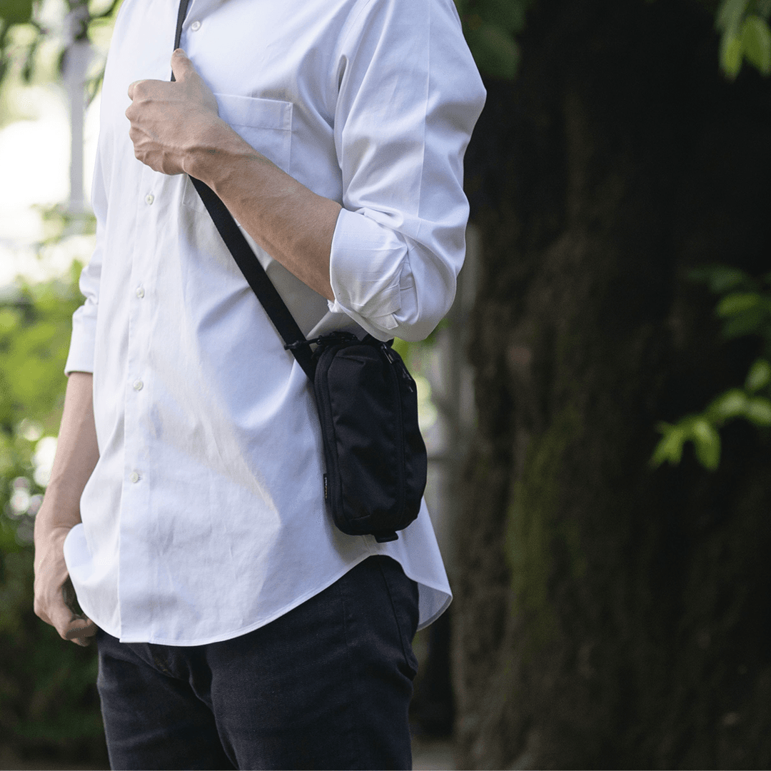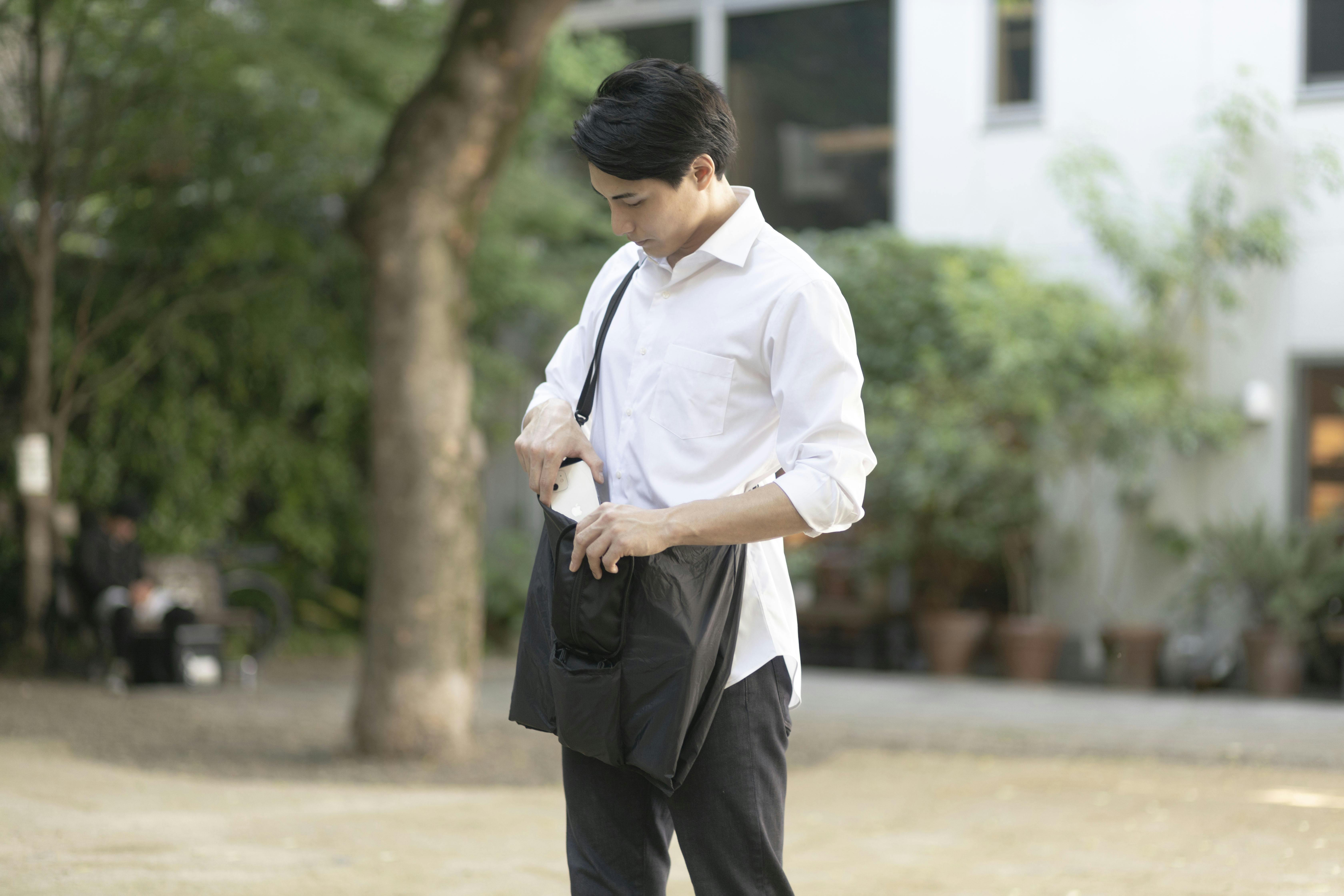 世の中に変形できるバッグはありますが、このトランスフォームバッグはコンパクトなサコッシュと容量のあるトート兼ショルダーバッグの組み合わせで、機能性だけではなく素材感や見た目にもこだわり、極力シンプルでクセのないデザインにまとめているのが特長です。