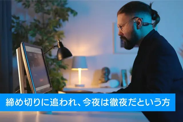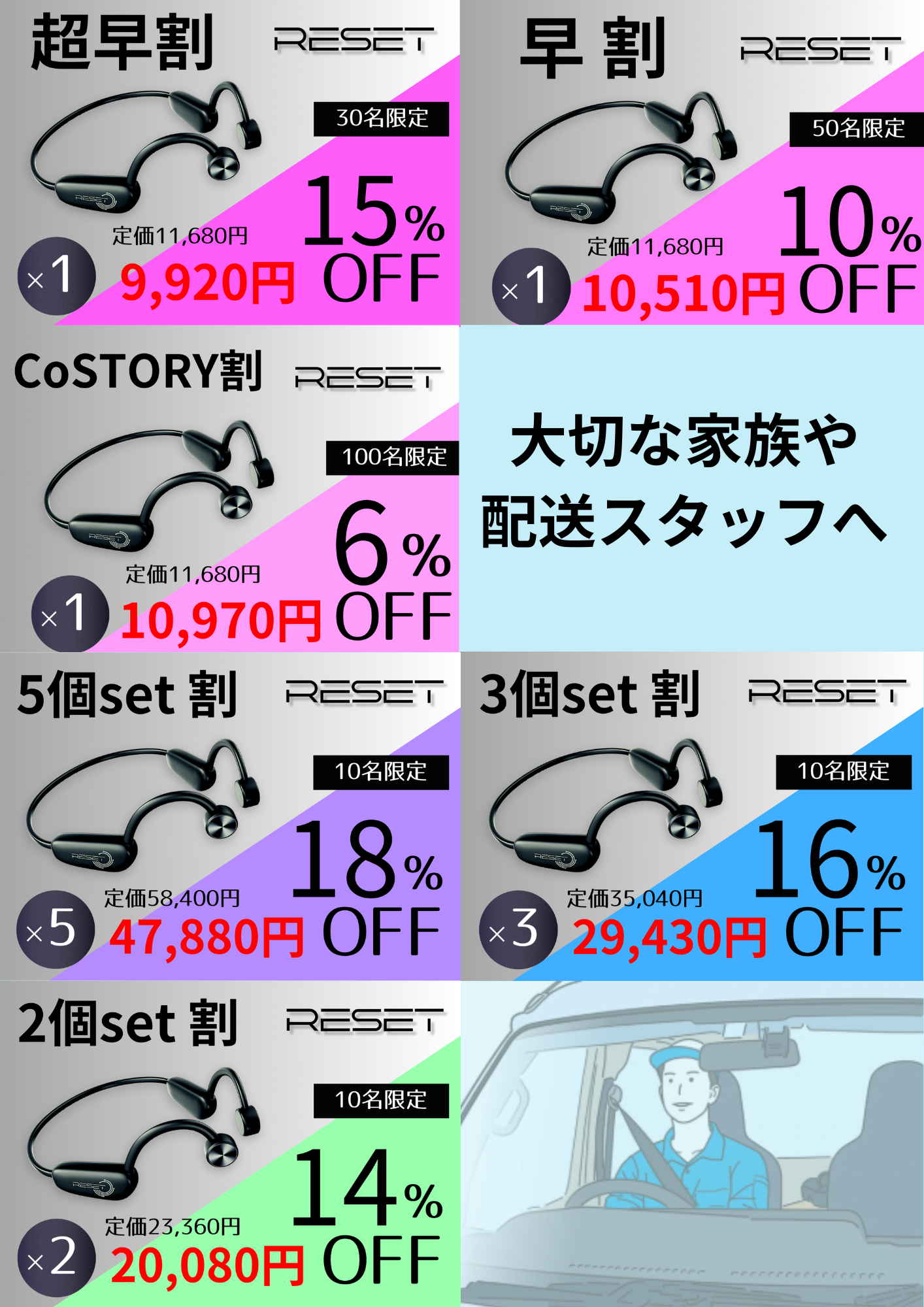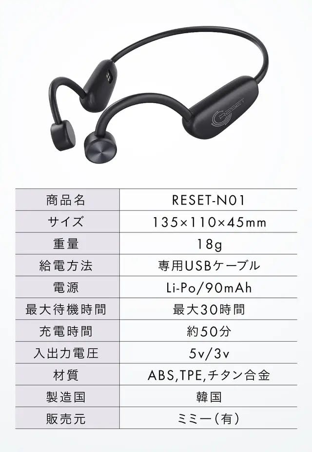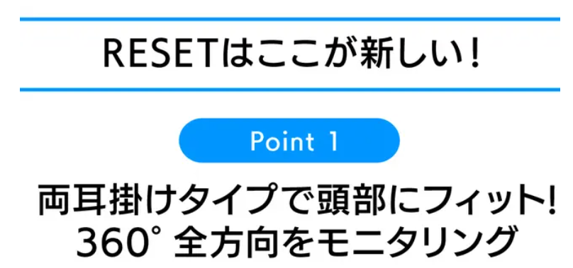 RESETは両耳掛けタイプですので、違和感なく長時間の使用が可能です。