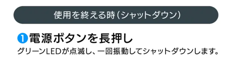 品物が到着しましたら、まず最初に満充電し、正常に作動するかご確認ください。