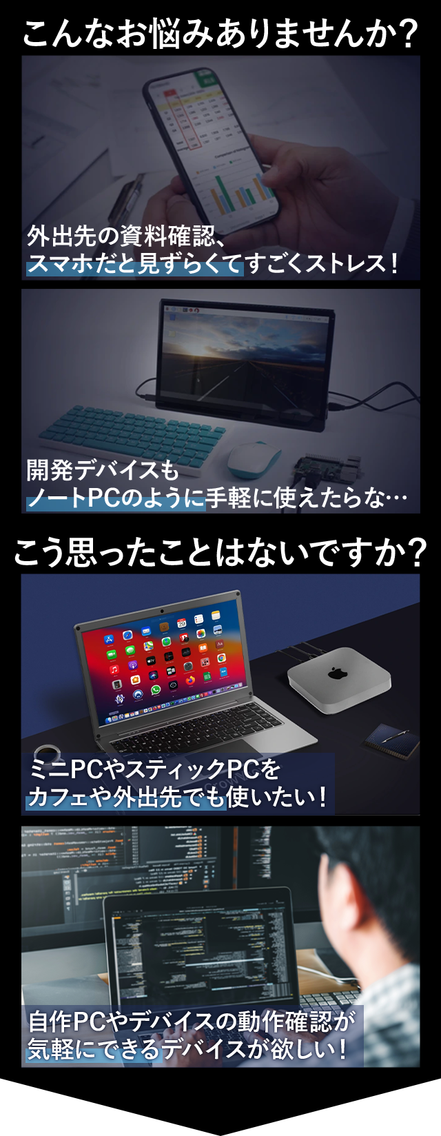 業務にも趣味にも幅広く使える、持ち運びにも便利なモバイルモニターです!(※対応スマホ:DisplayPort Alt Mode対応のAndroid、iPhone15)