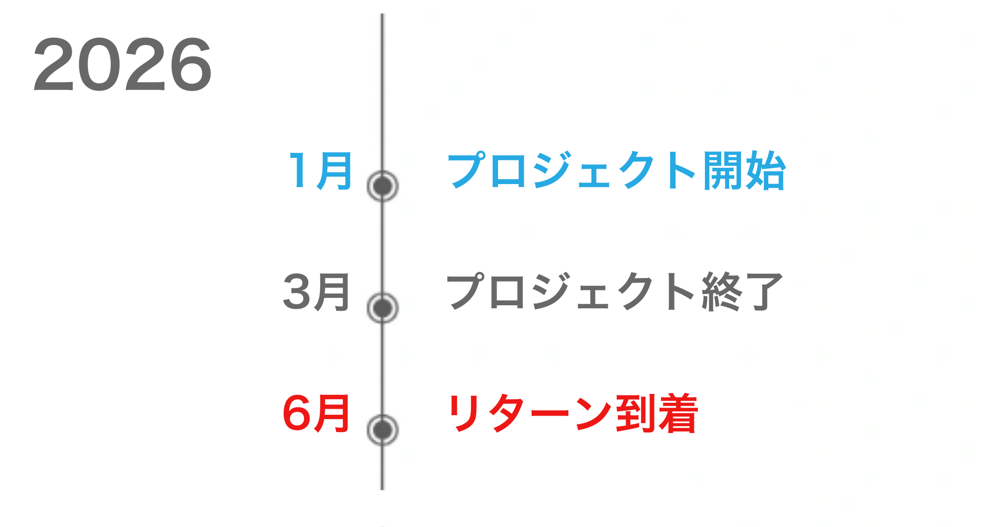 ※本文中に記載させていただいたスケジュールは、あくまでプロジェクト公開時点の予定です。先行販売を経て購入を行う性質上、配送遅延のおそれがございます。