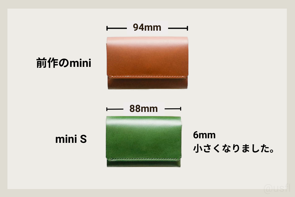 サイズと収納量のバランスを取り、カード7枚でデザインした財布が前作の「mini」です。