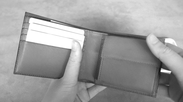 お金やカードを出し入れする順番が変わっても、財布を傾けたり、持ち方をを変えたり、ポケットを開けたり、覗き込んだりするアクションはありません。すべてをスムーズに出し入れできます。