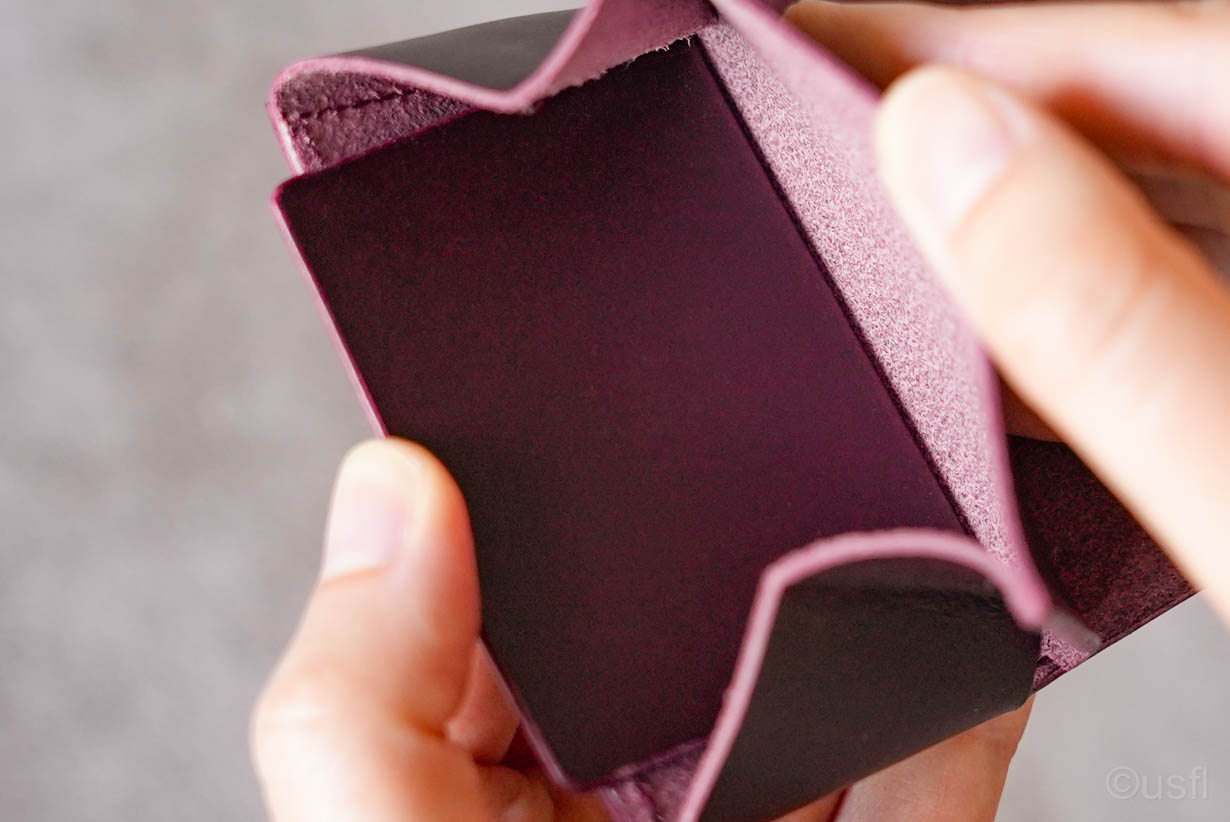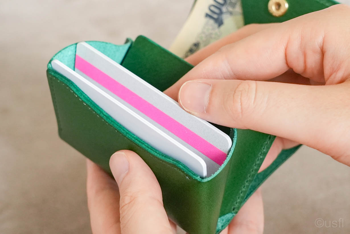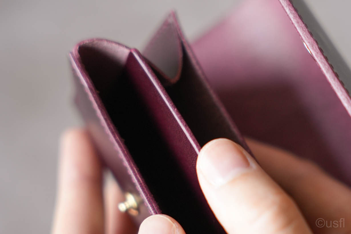たとえば、カードの仕切りを1枚の革で作ると安価にできますが、その結果操作性などが犠牲になります。これではusflの財布とは言えません。