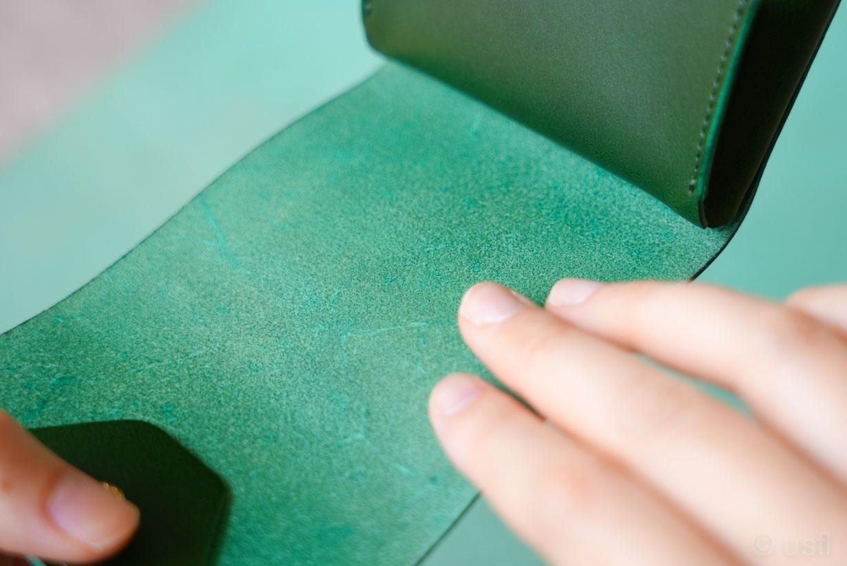 「革の裏面」は毛羽立ちやすく、お札が滑りにくくなるため気持ちよく使えません。