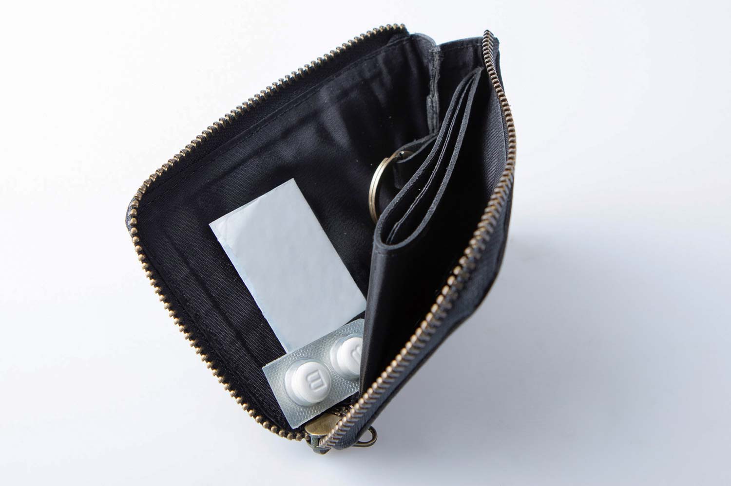 - 内側にはキーリングを装備しているので、鍵も一緒にひとまとめに収納可能。