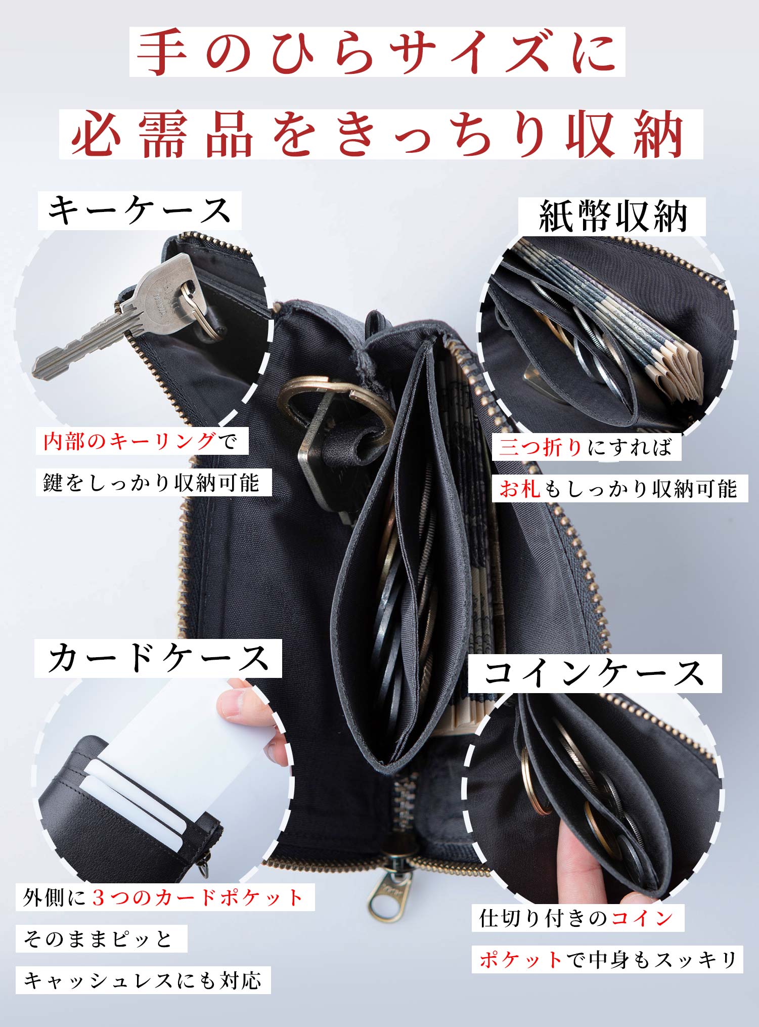 カードケース、キーケース、ミニ財布。「その3つ、ひとつにしませんか?」