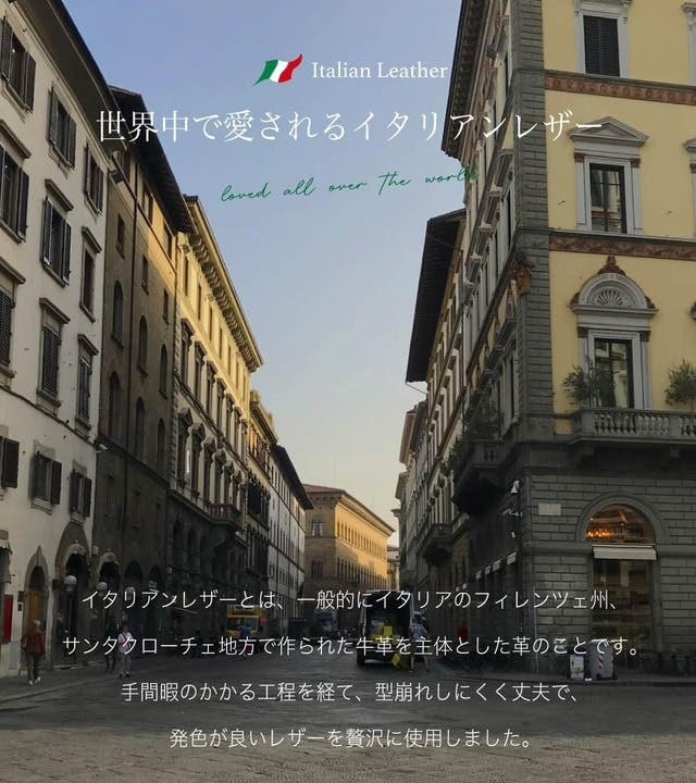 - 素材には、風合いと耐久性を兼ね備えたイタリアンレザーを使用。