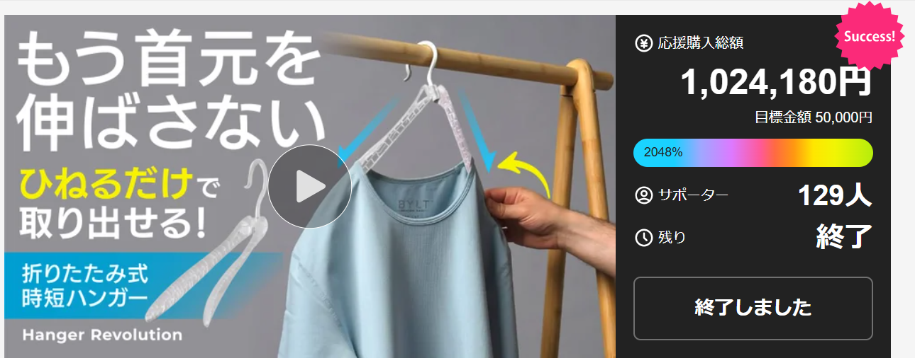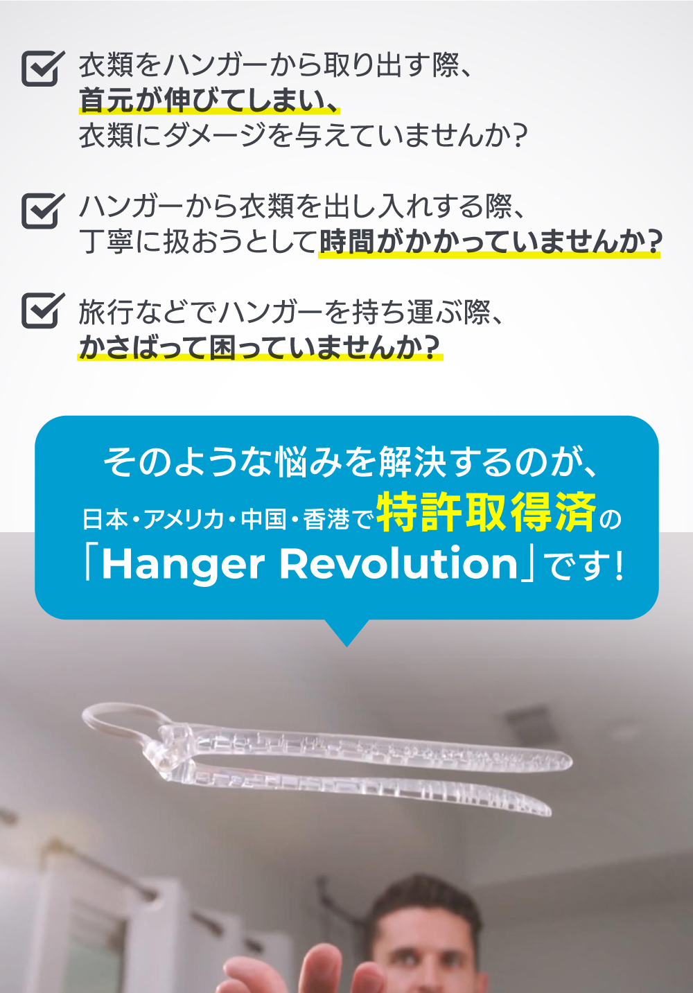 所在地はアメリカです。「Hanger Revolution(折りたたみ式ハンガー)」は、約4年の歳月をかけて考案され、同社が販売権を保有しています。