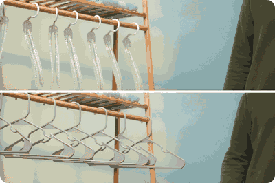 衣類をハンガーに掛けて保管する際は、ハンガーの向きを必ず統一してください。