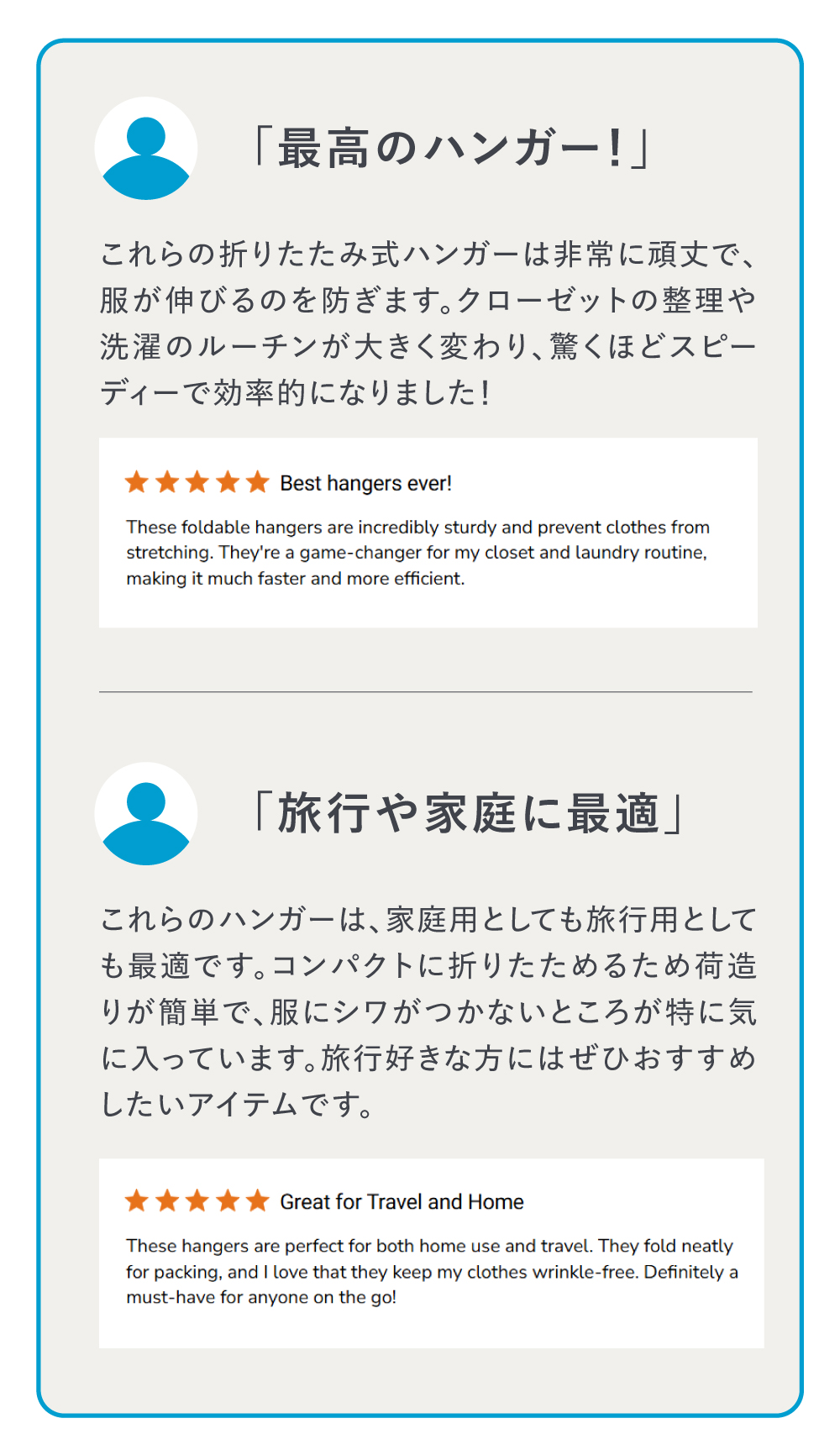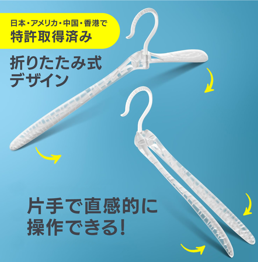 世界中から、ありそうでないようなユニークな商品を発掘しています。今回ご紹介する「Hanger Revolution(折りたたみ式ハンガー)」は、衣類を取り外す際の負担軽減や時短を実現するだけでなく、半分に折りたためるため、保管や持ち運び時のスペースを節約できる点も大きな魅力です。また、大切な衣類へのダメージを防ぐという利点も備えています。このめずらしい商品を国内での普及を通じて、多くの方々の生活がより快適で豊かになることを願っております。